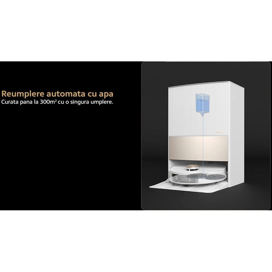 Reumple rezervorul de apa al robotului din rezervorul de apa curata de 4,5 litri pentru a mentine mopul umed si a mentine o eficienta ridicata de curatare.