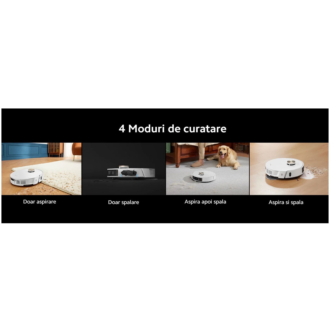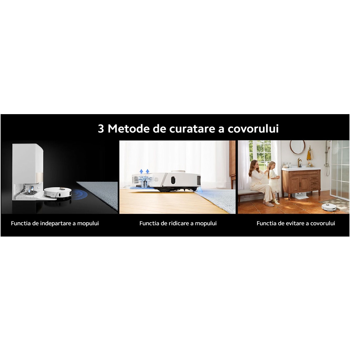 Merge foarte bine funcția de ridicare a mopurilor, ca să nu mai zic ca puteți seta din aplicație să își lase mopurile în stație atunci când aspiră covoarele. Mai citiți instrucțiunile înainte să fiți atât de ferm…