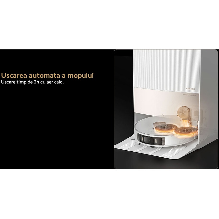 Dupa multe luni de comparat review intre Dreamie Roborock si alte marci, decizia a ramas pe Dreamie. Autocuratare 10/10, aplicatie 10/10, Am primit foarte multe accesorii 10/10: 4 solutii, 5 perechi de mop, filtre, saci, perii etc. Pentru mine un plus fata de roborock este camera. Poti accesa camera in timp real, access voce si are si lumine pe timp de noapte. Perfect pentru oamenii cu animale de companie. Un plus este si optiunea pentru smart home. Se poate integra cu apple home, alexa si google home. Se pot face shortcut uri super utile, de exemplu, curatarea zonei de litiera dupa ce pisica a iesit.