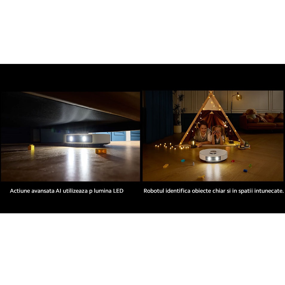 Cu ajutorul inteligentei artificiale si al sistemului de evitare a obstacolelor cu lumina structurata 3D, L20 Ultra se misca cu o fluiditate impresionanta, evitand obstacolele fara efort. Cu un LED incorporat , robotul identifica obstacolele si curata eficient in spatii slab iluminate si camere intunecate .
