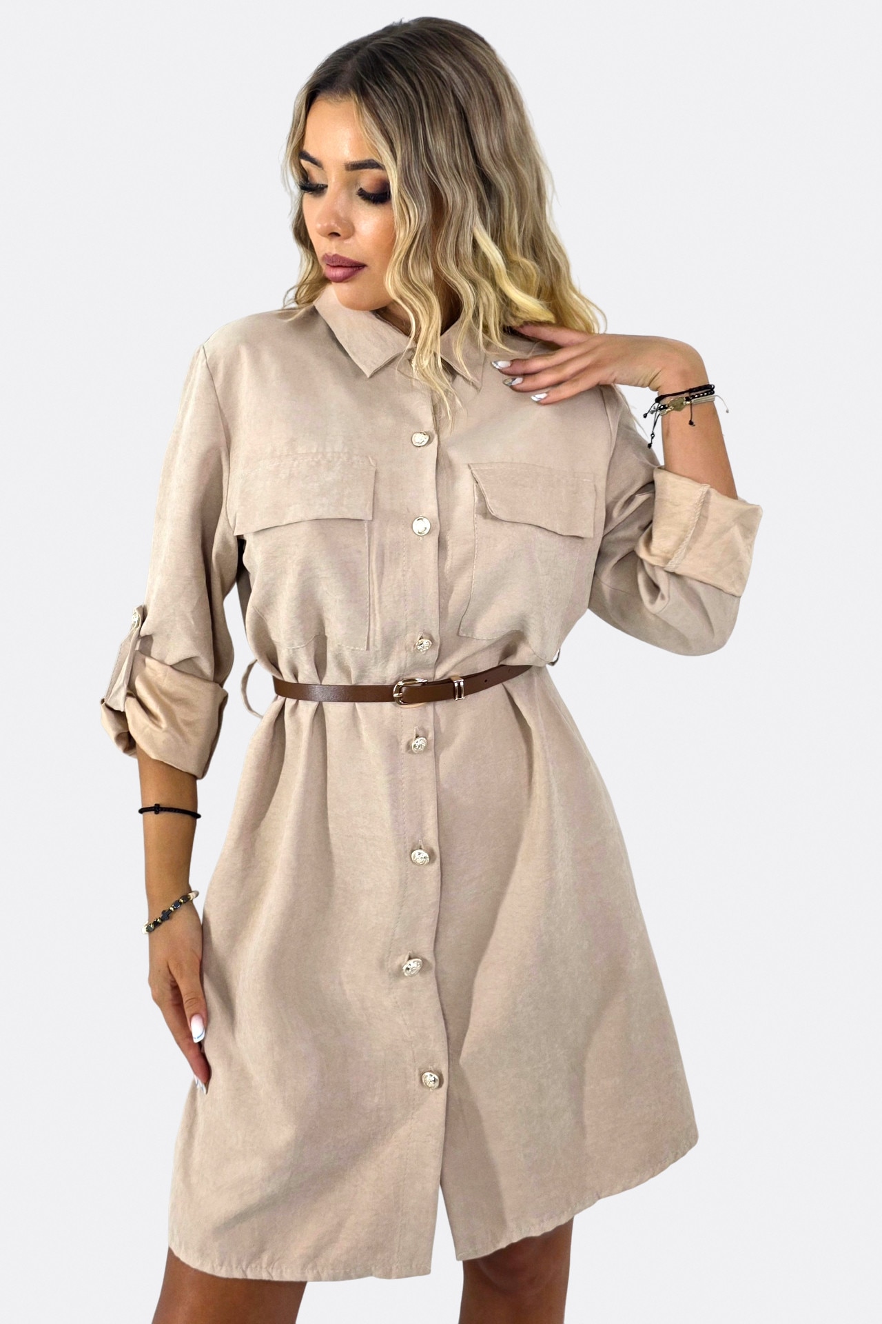 Rochie casual cu buzunare Kayla si inchidere nasturi, Crem, Marime universala S/M, FashionForYou