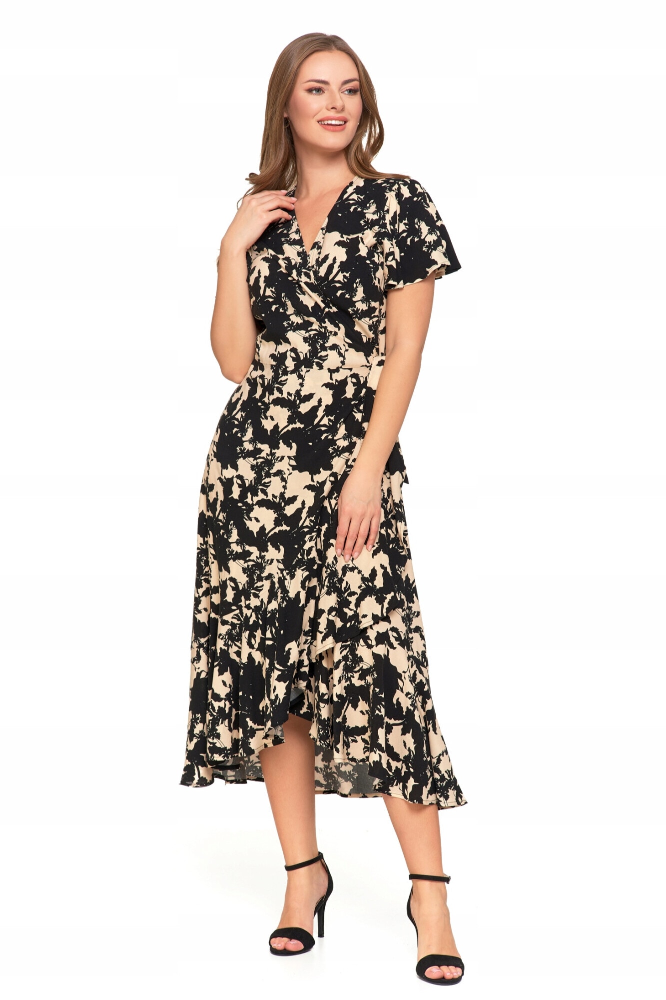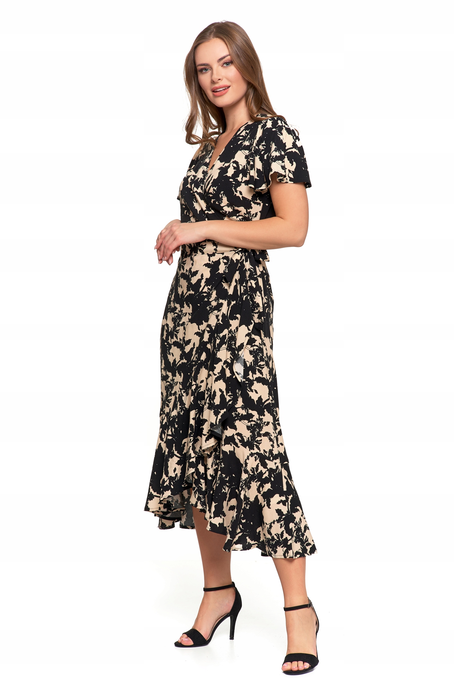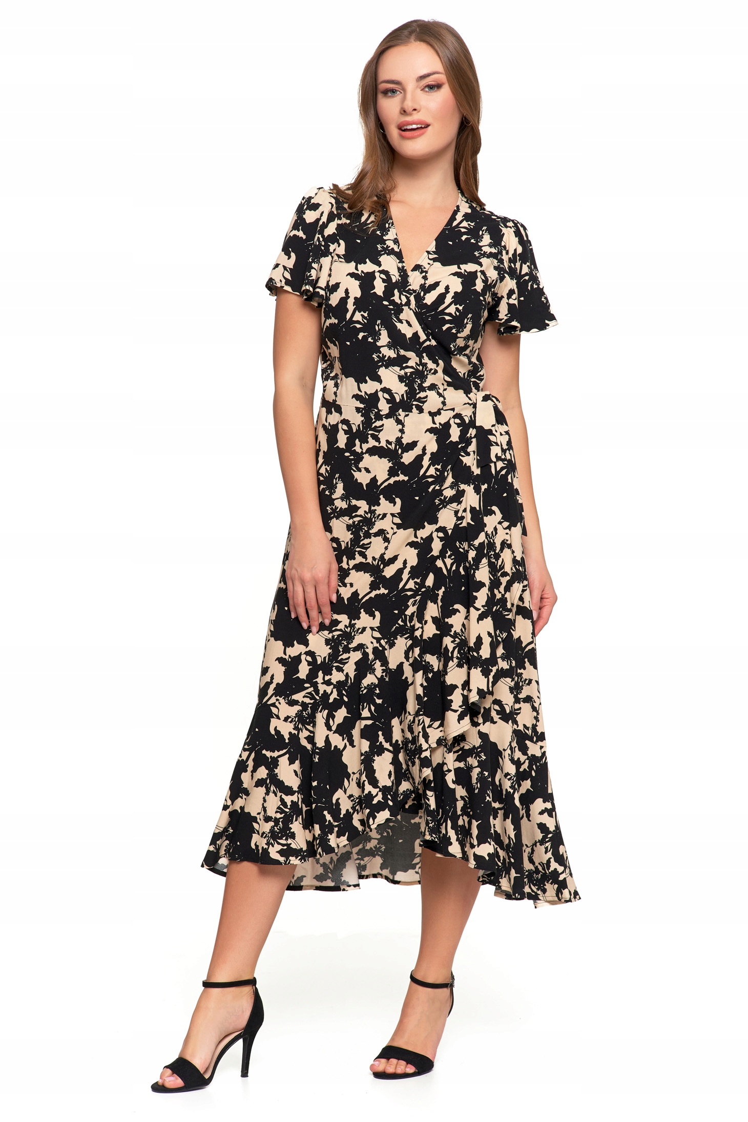 Rochie midi, Moraj, eleganta, cu decolteu plic, volane, viscoza, S INTL