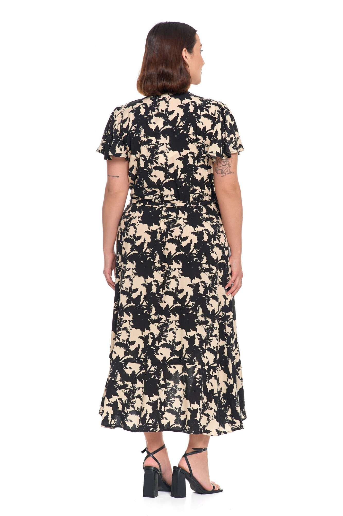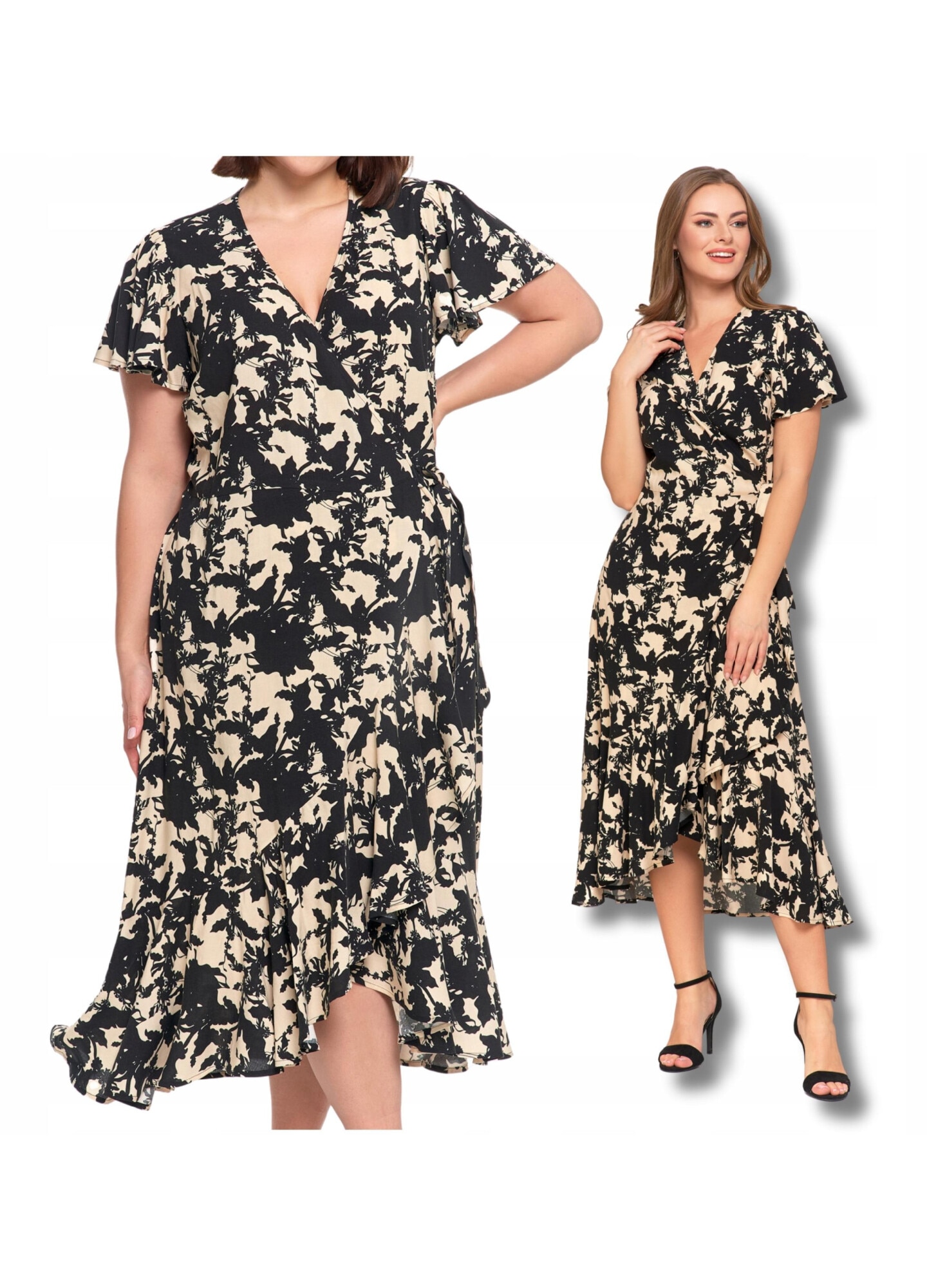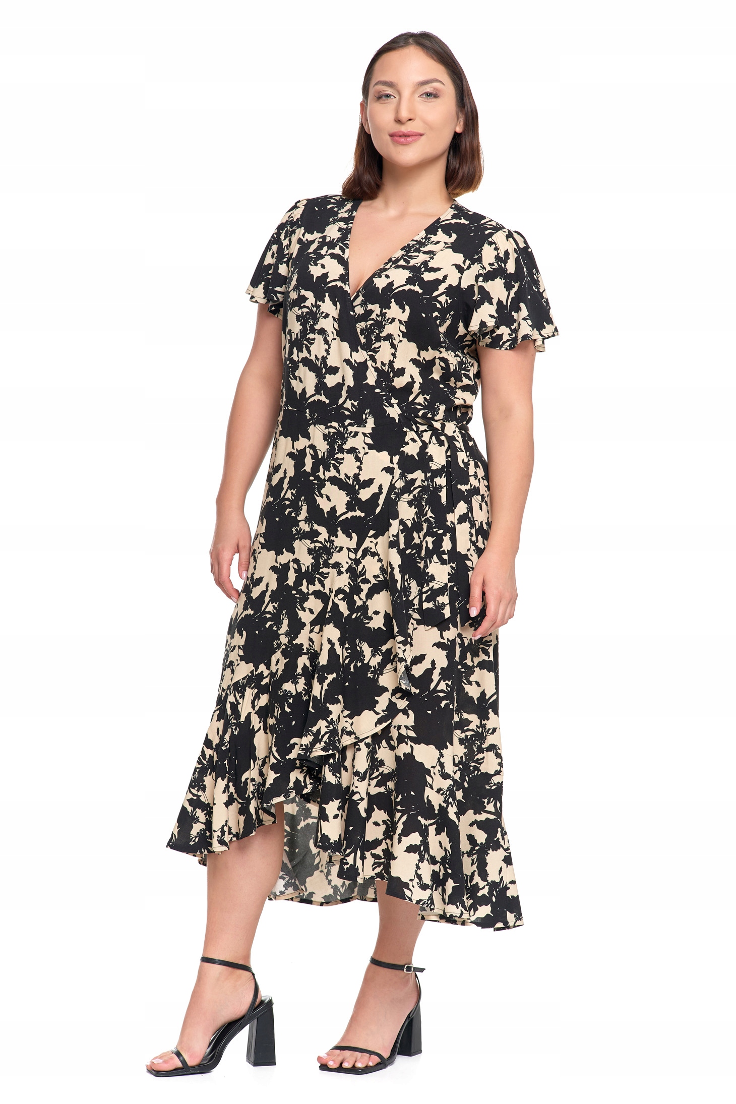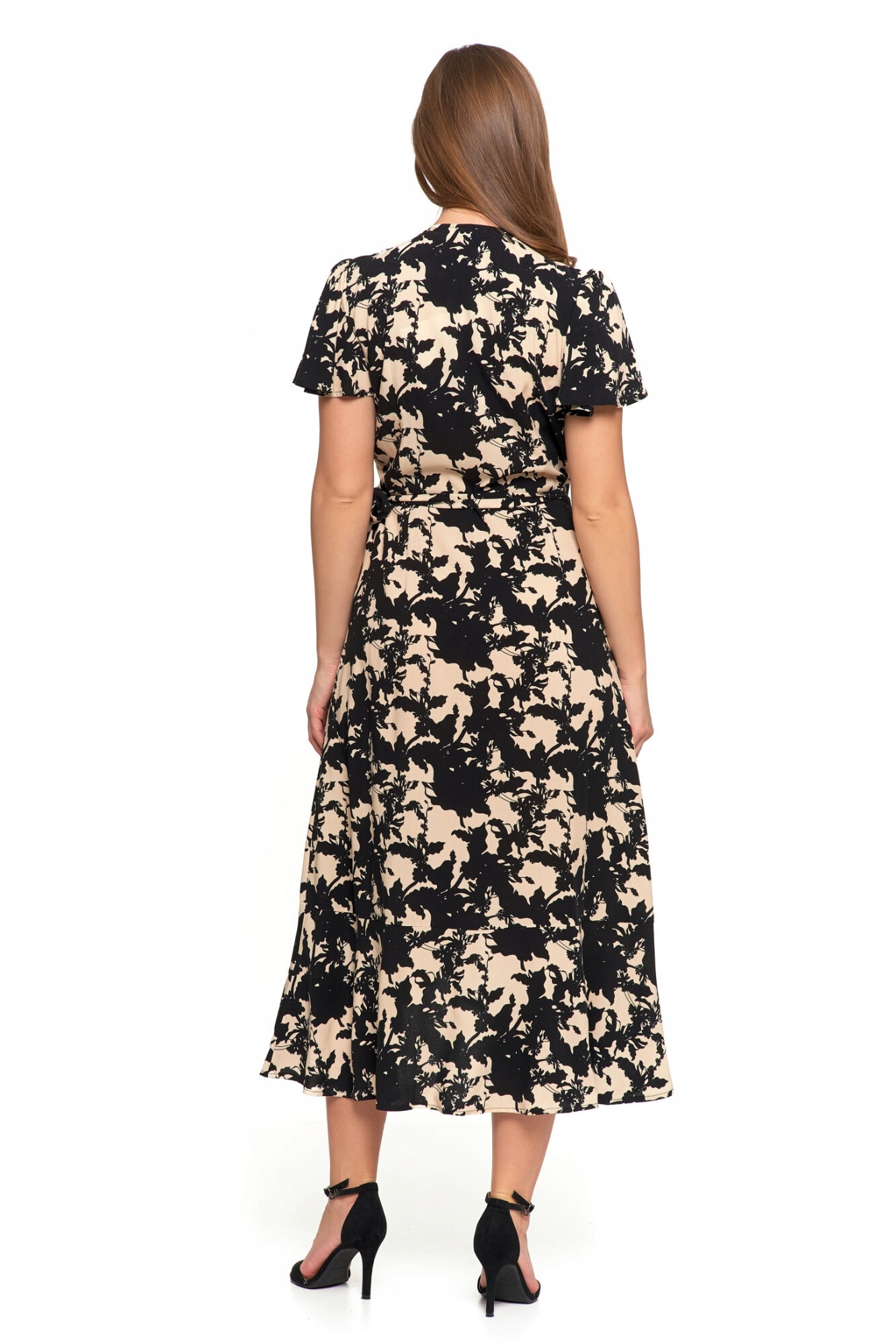 Rochie midi, Moraj, eleganta, cu decolteu plic, volane, viscoza, S INTL
