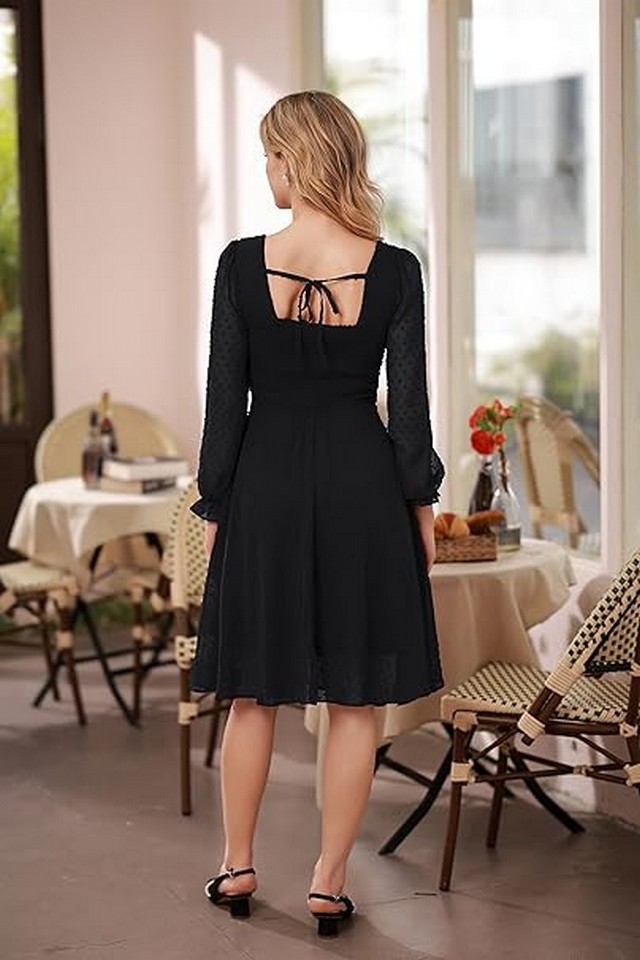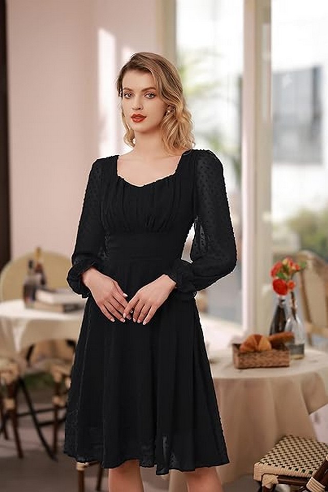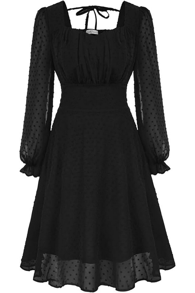 Rochii de dama vintage, pana la genunchi, cu decupaje in forma de inima, negru, marimea S, model 585A22-01, Belle Poque