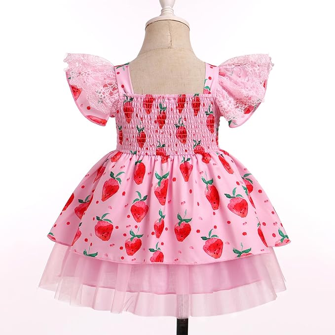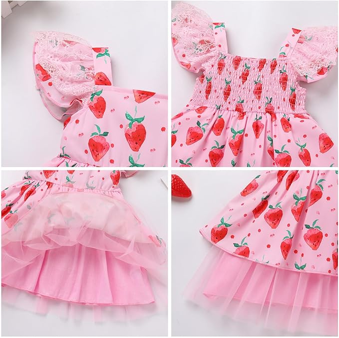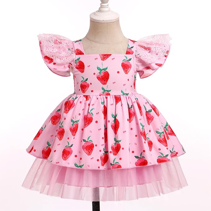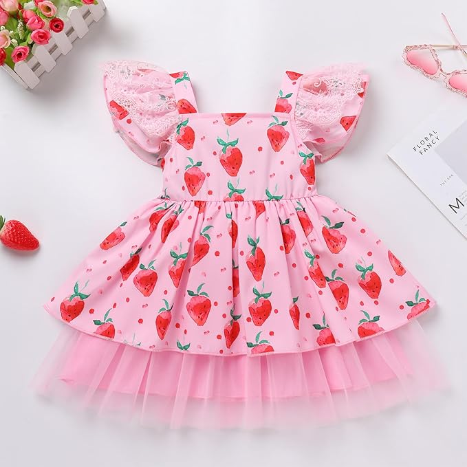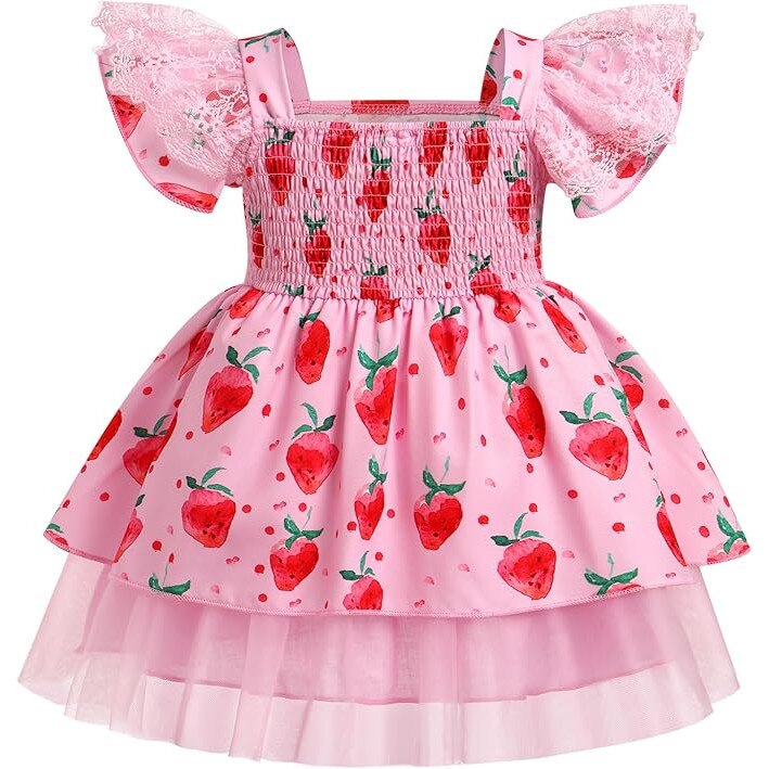 Rochita bebelusi fetite FYMNSI, 18-24 luni, model capsuni, fara maneci, culoare roz
