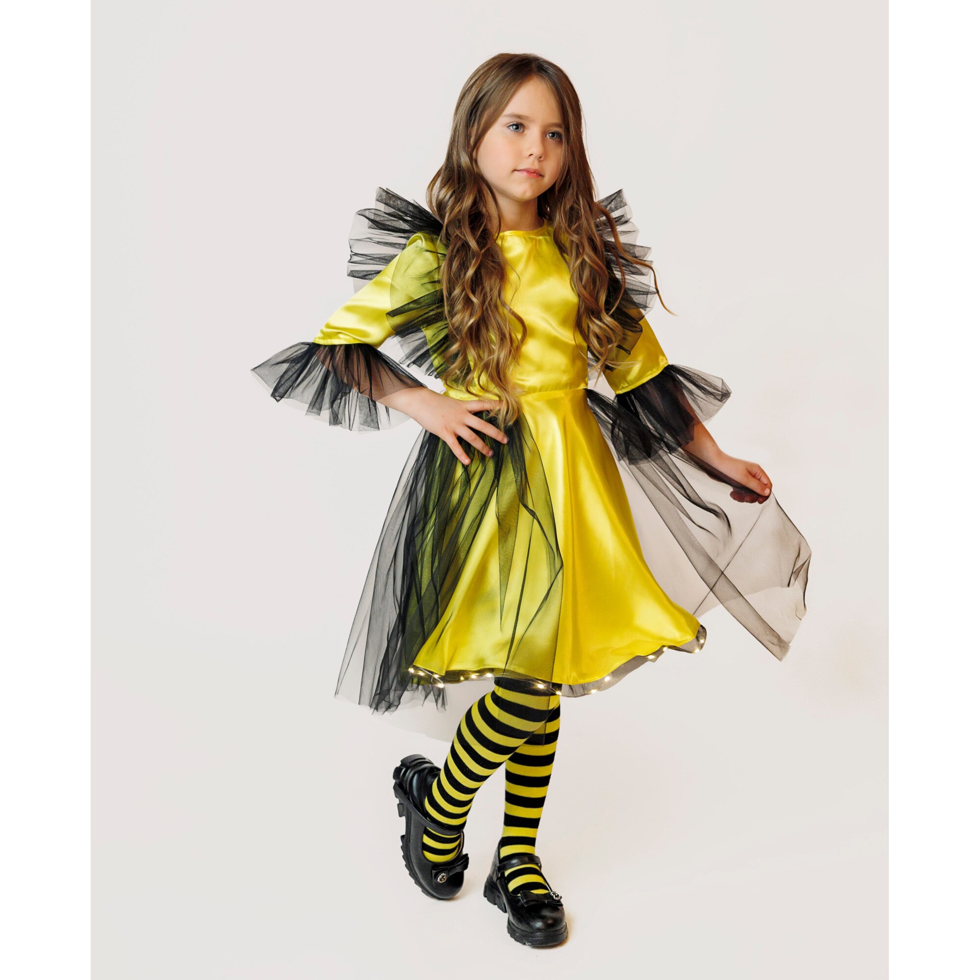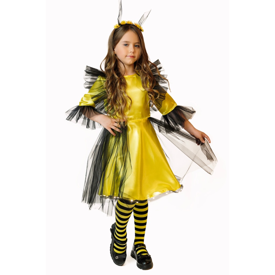 Rochita de Albinuta cu Luminite, cu aripioare din tulle, pentru serbari si Carnaval, Galben-Negru, 3-4 ani