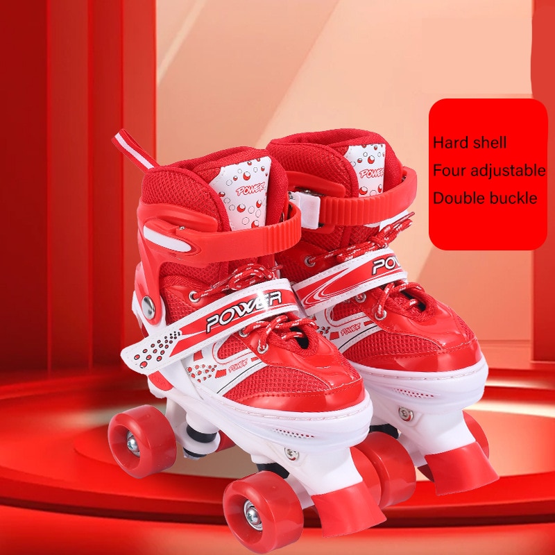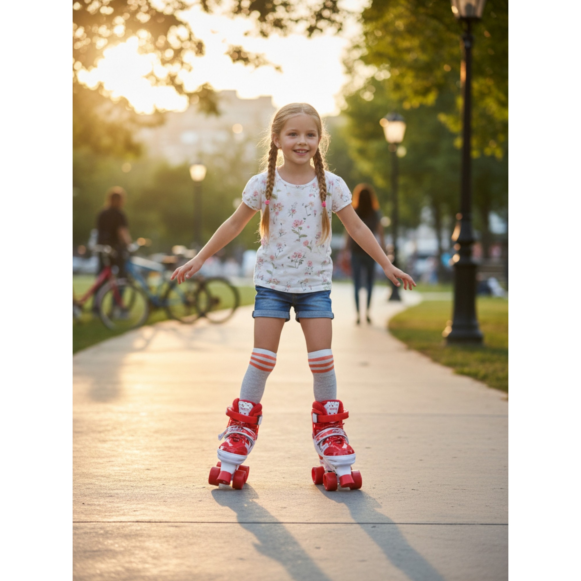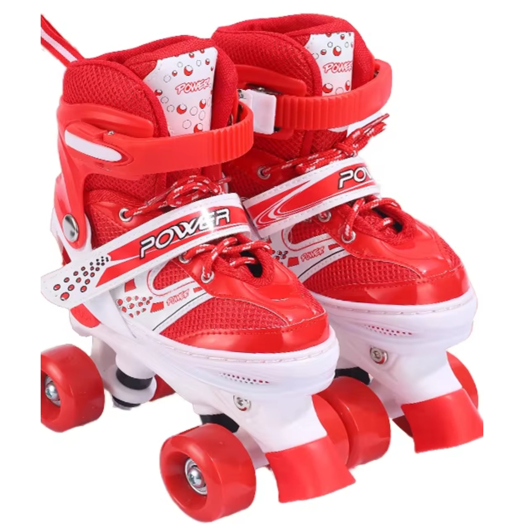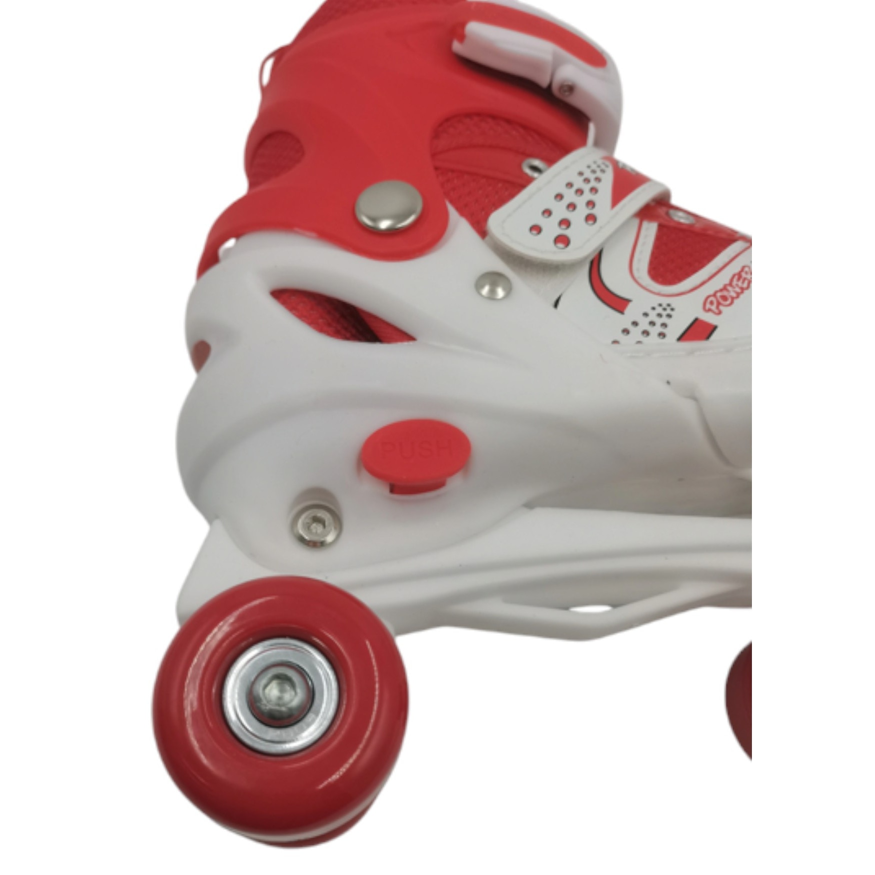 Role copii reglabile pentru incepatori, tip patine, 4 roti, cu frana de siguranta, model Power, marime ajustabila 31-34, Rosu