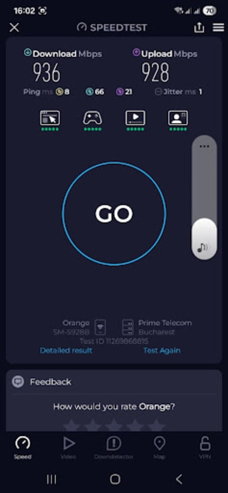 - test de viteza pe S24Ultra la 10 metri fara obstacole