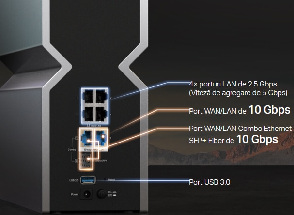 Salut, iti multumim pentru interesul acordat produselor TP-Link. Poti alege din interfata care din cele 2 porturi marcate WAN/LAN sa fie WAN si care LAN. Daca alegi 2.5Gbps ca WAN, automat cel de 10Gbps se va activa in LAN 😀. Daca te putem ajuta cu informatii aditionale, nu ezita sa ne contactezi telefonic sau prin email: www.tp-link. Com/ro/support/contact-technical-support/ Editează