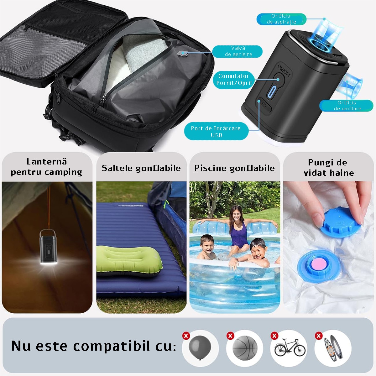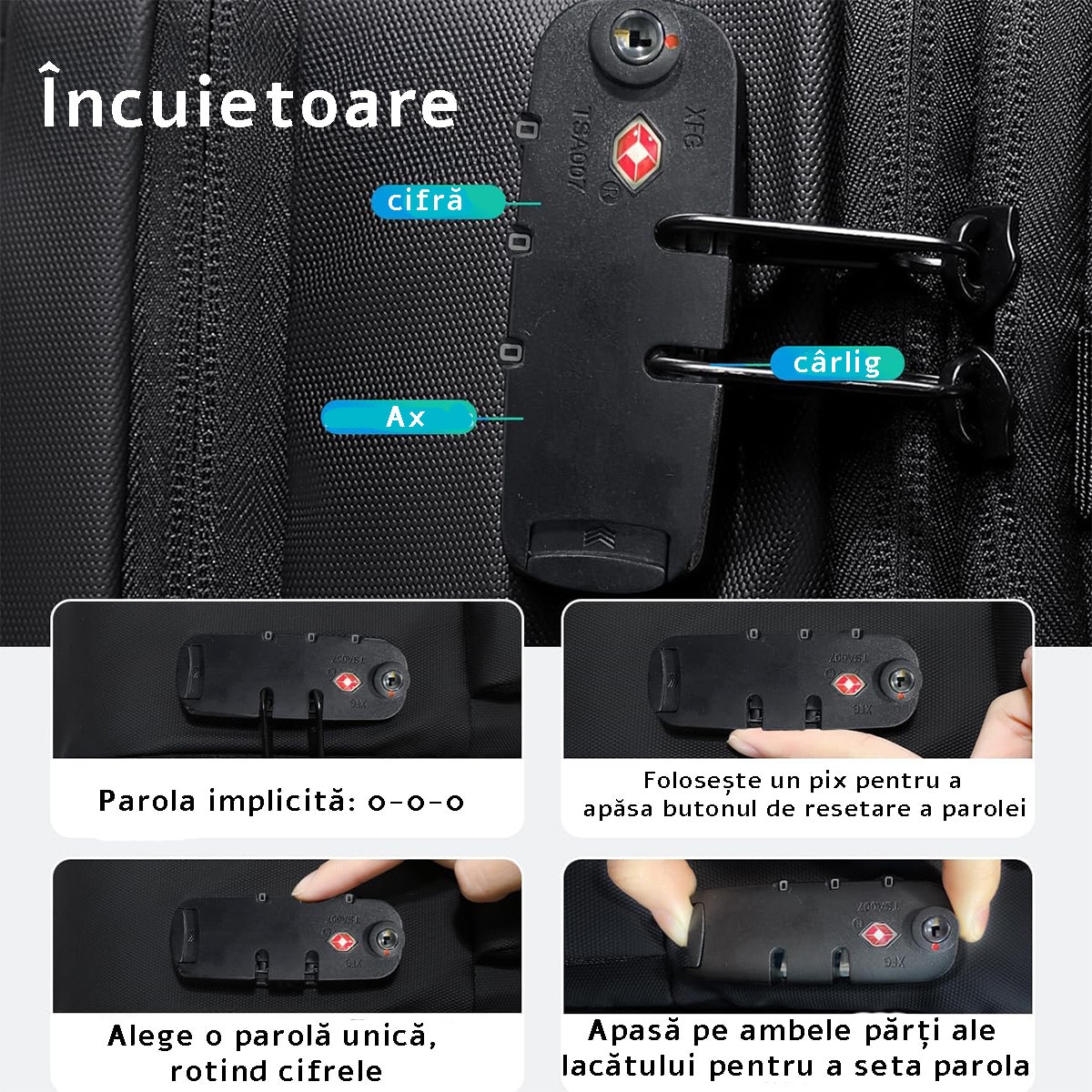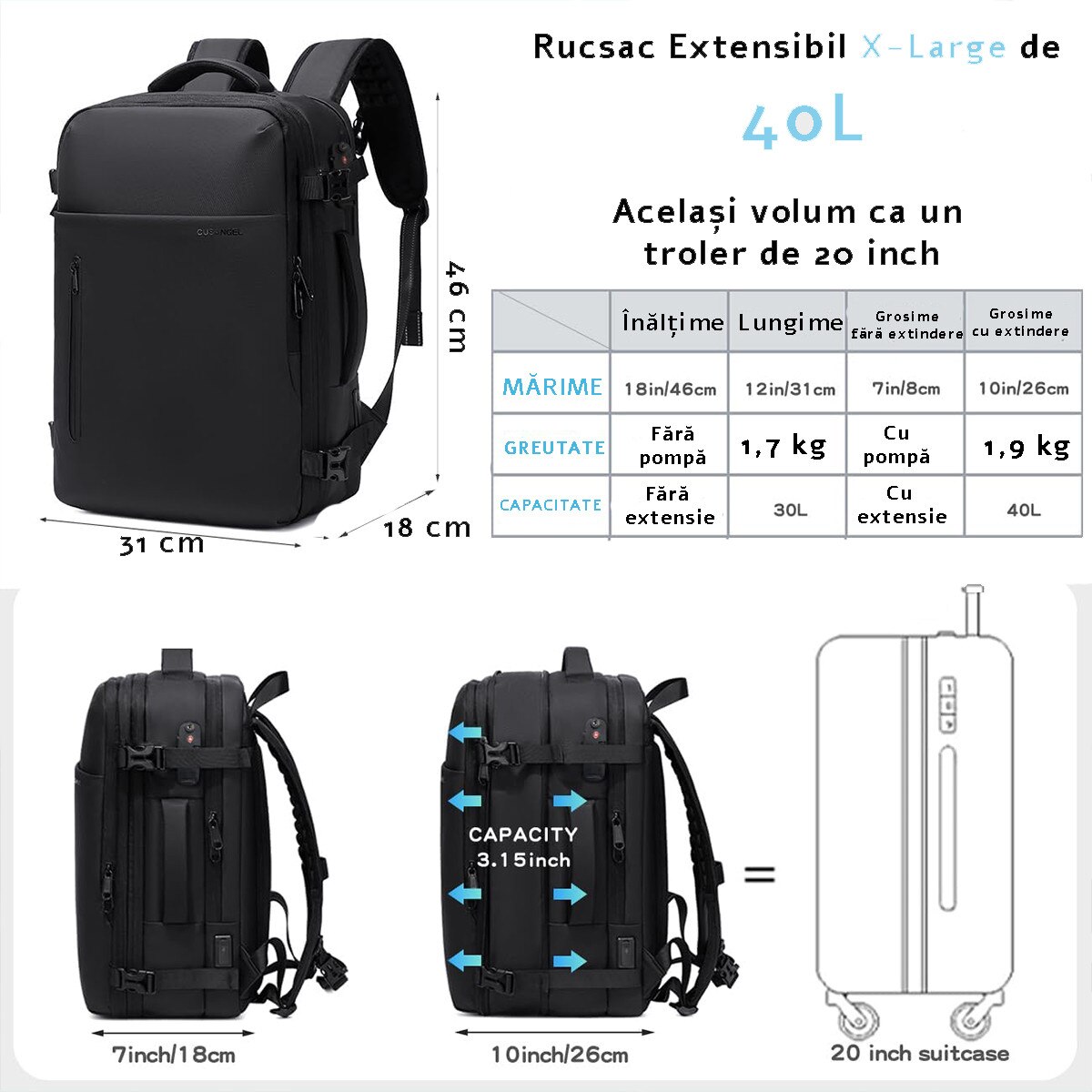 Rucsac Calatorie JOYSTOS 60L, Extensibil cu Compresie Vacuum, Compartiment Laptop 17", Port USB, Antifurt, Impermeabil, Bagaj de Mana Avion, Buzunar Fata Orizontal