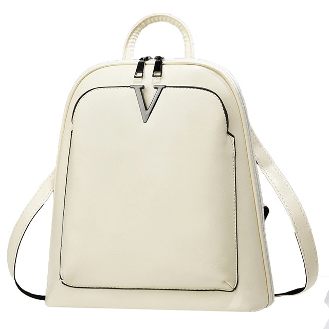 Rucsac dama 2 in1, transformabil in geanta, cu bareta reglabila sau maner fix, bretele reglabile, piele ecologica, 8 compartimente spatioase, alb/crem