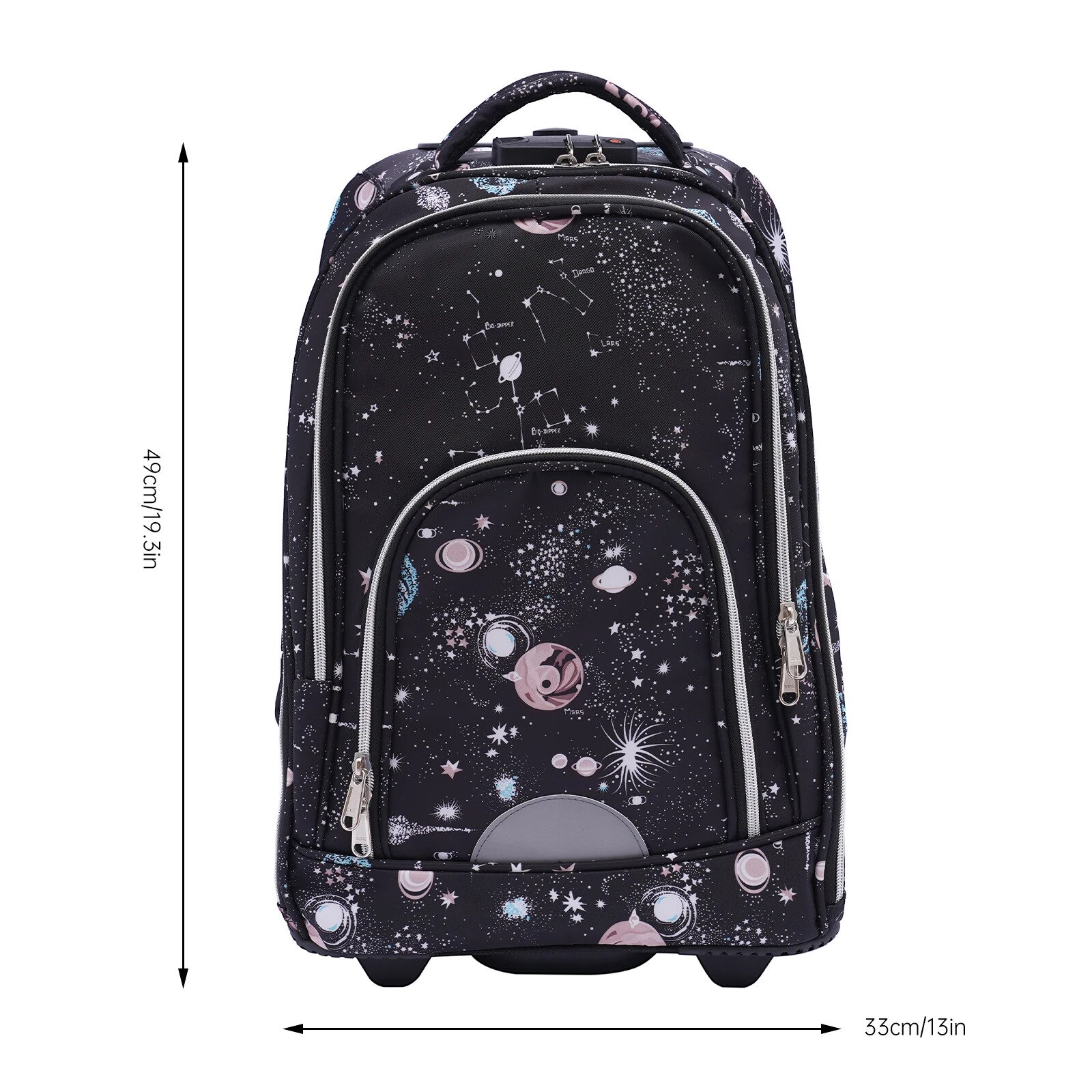Rucsac de calatorie, capacitate mare, cu roti si tija de tragere, gri stelar, 33x25x49cm