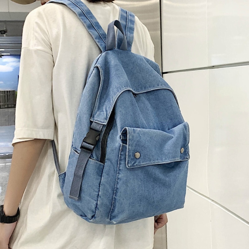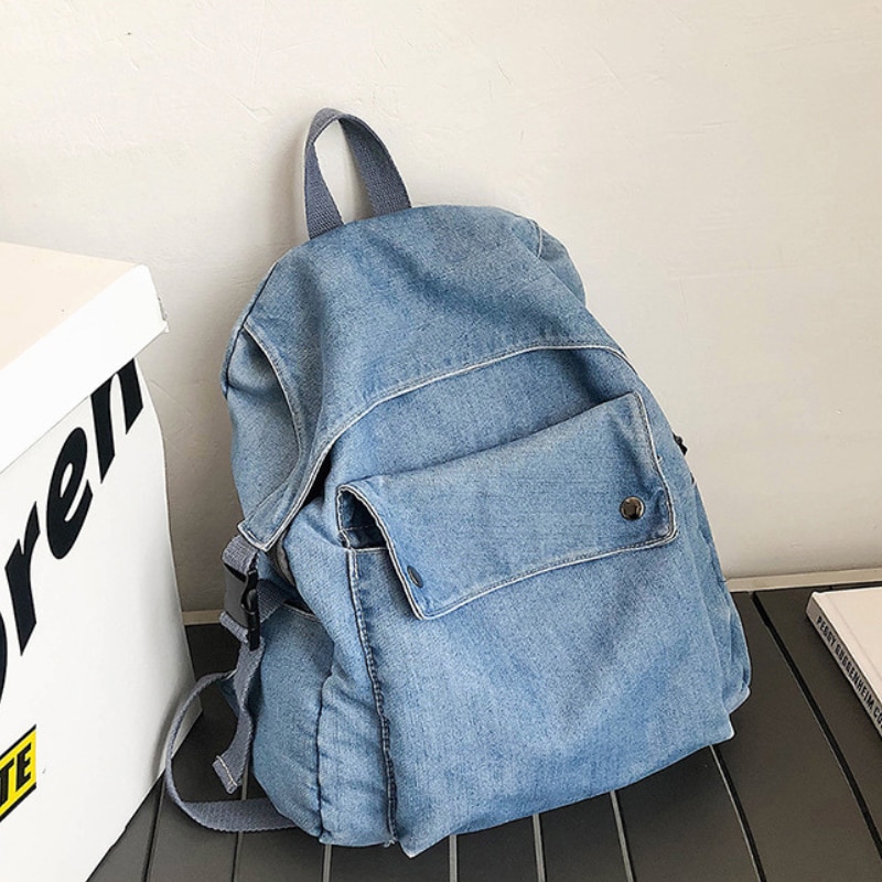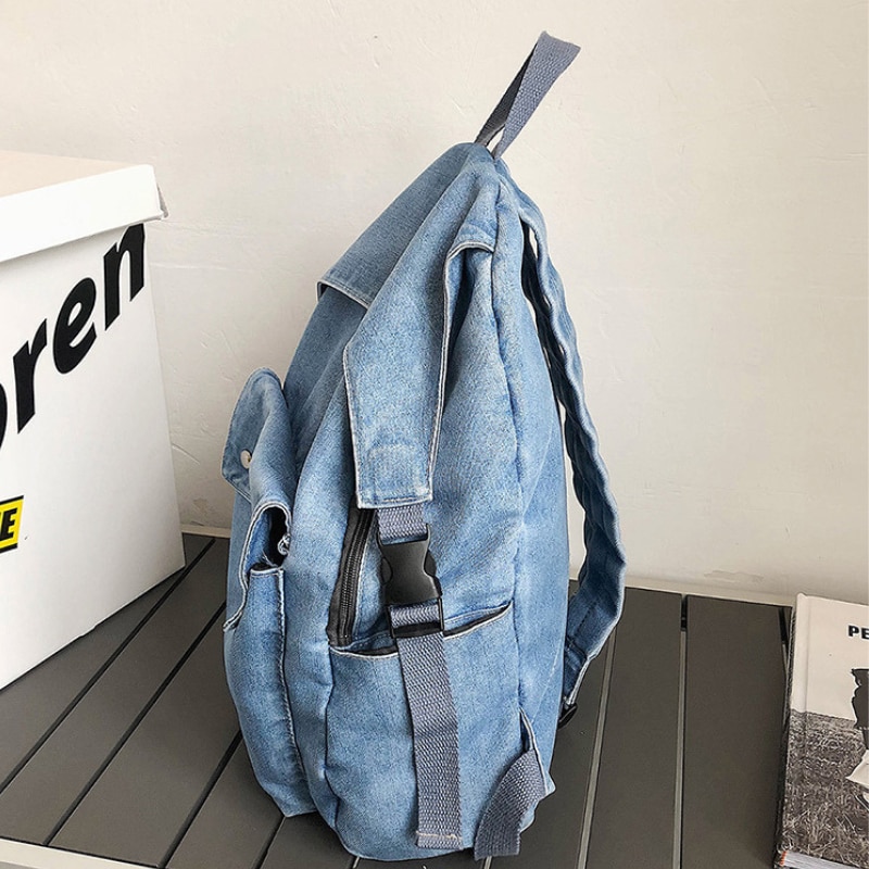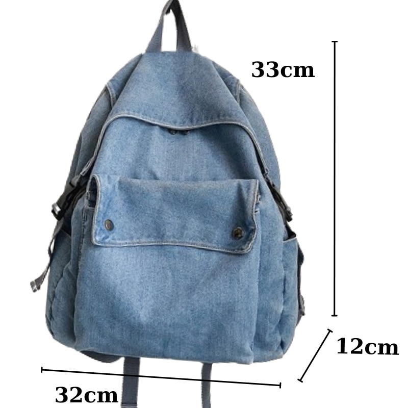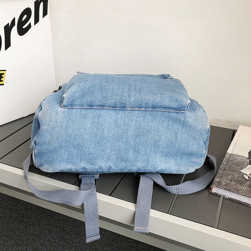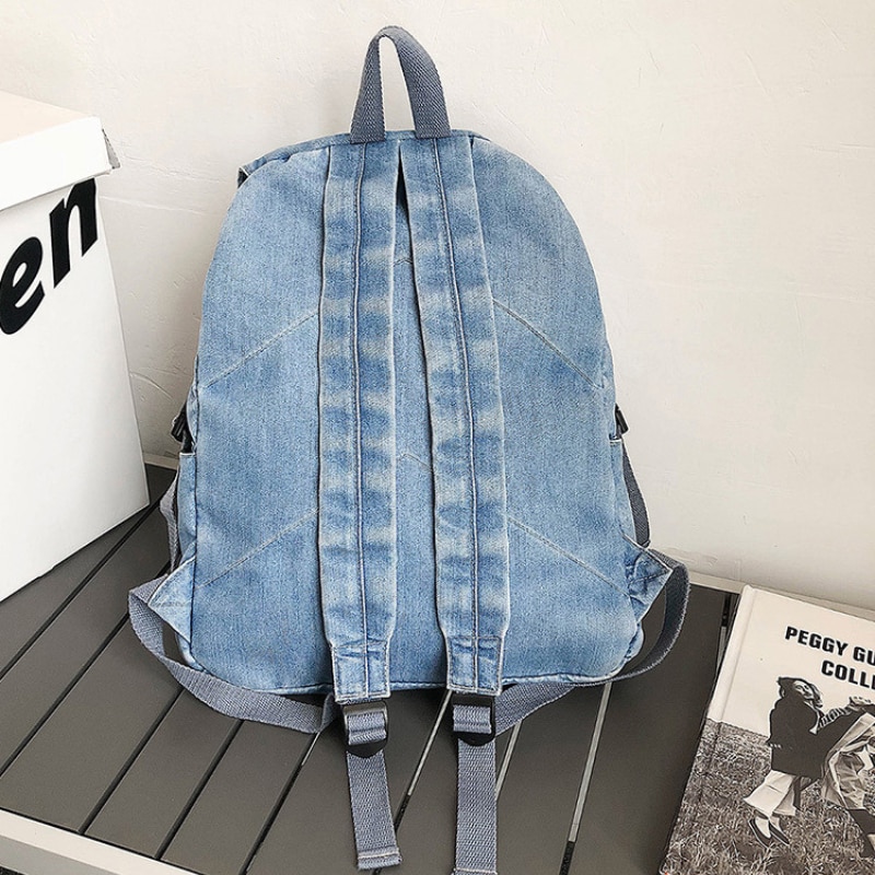 Rucsac Denim, Ledera, Casual, Urban, Vintage, Hippie Boho Style, Unisex, Blugi Albastru Deschis, 33x32x12cm