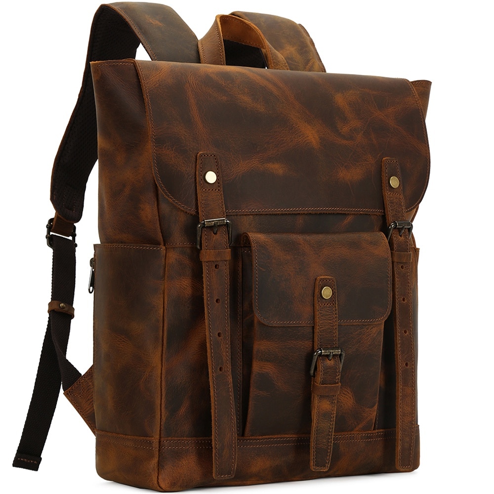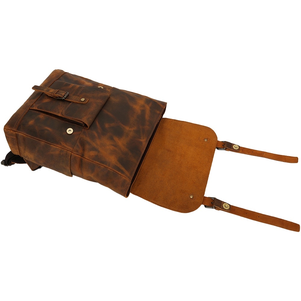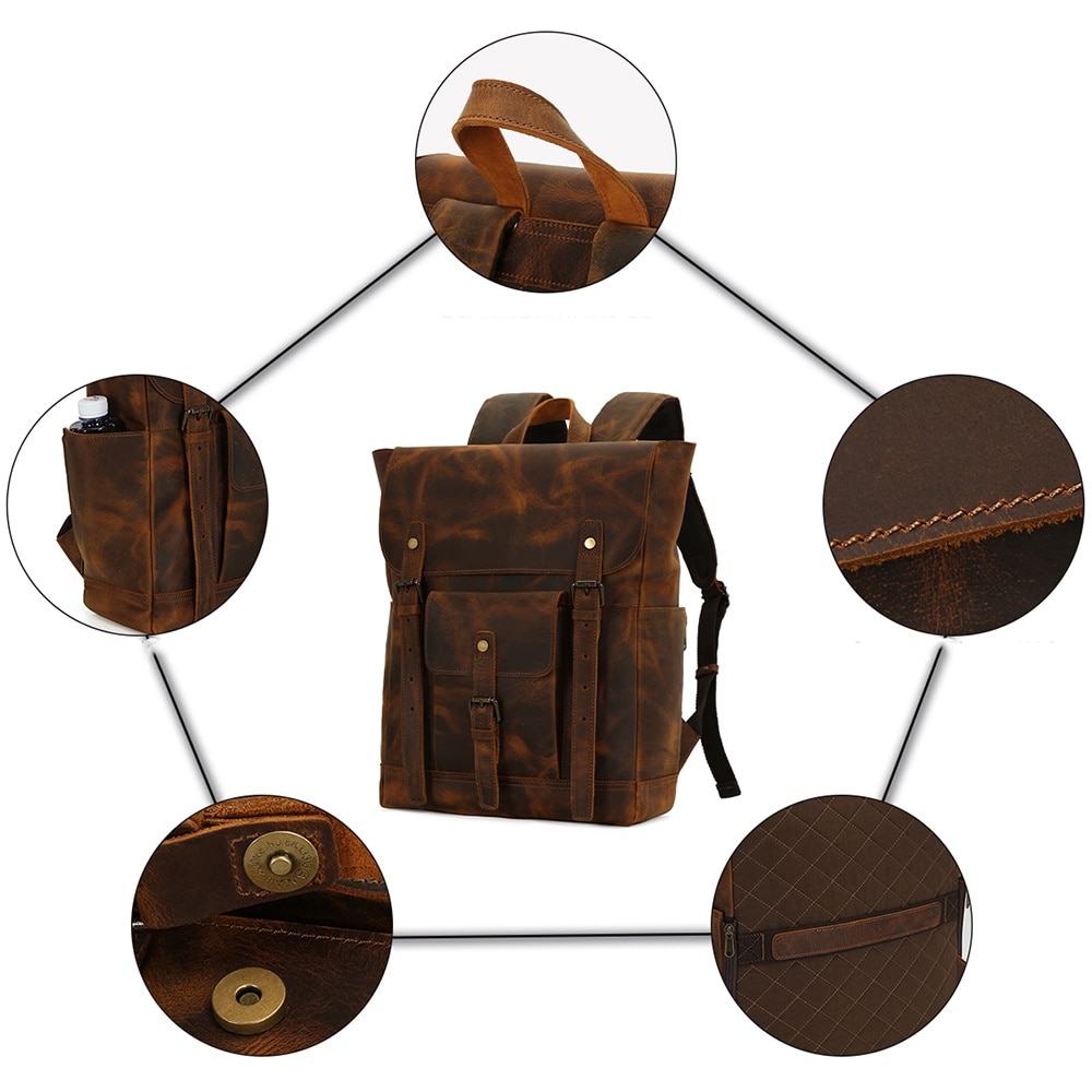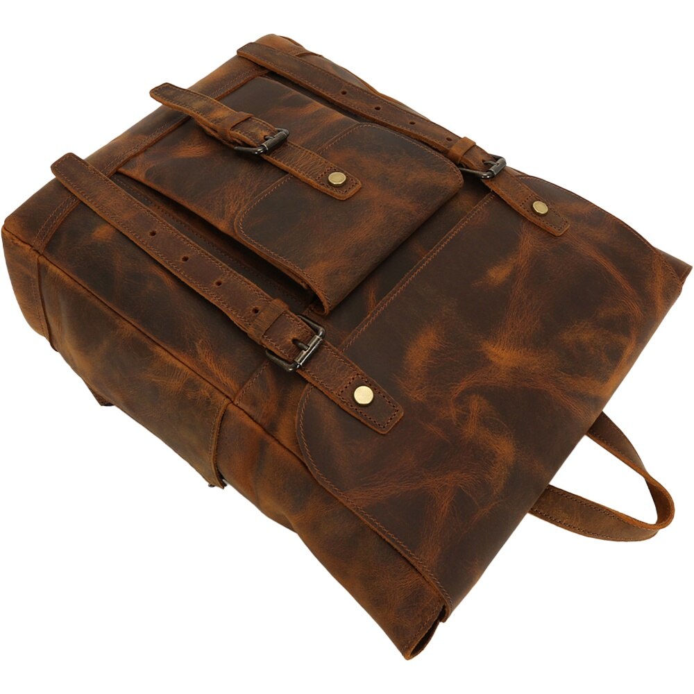 Rucsac din piele naturala, compartiment laptop 15.6 inch, potrivit pentru birou, calatorii, drumetii, activitati zi de zi, aspect vintage, stil retro, unisex, JOLAR., P-0120BN, Maro