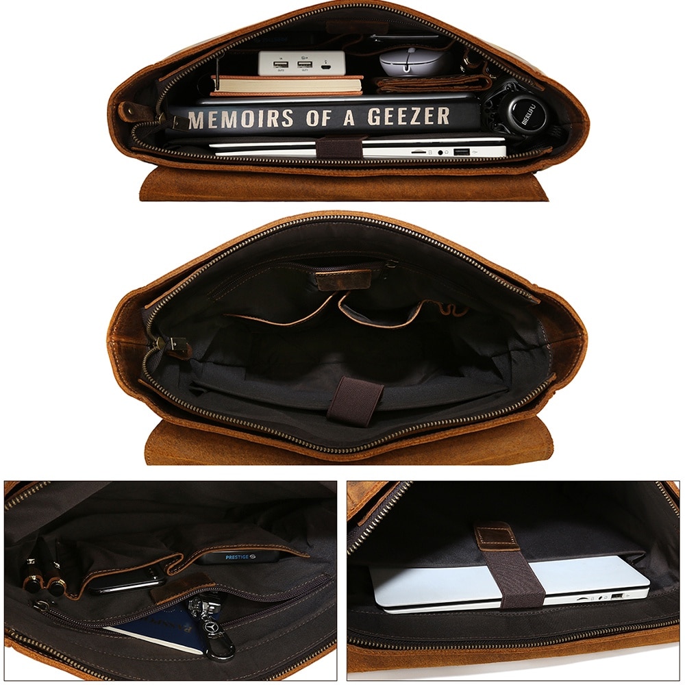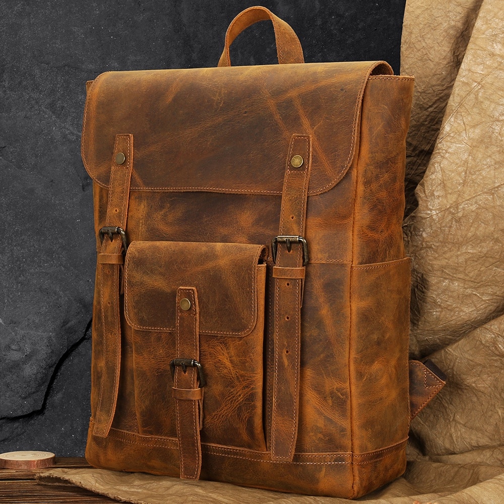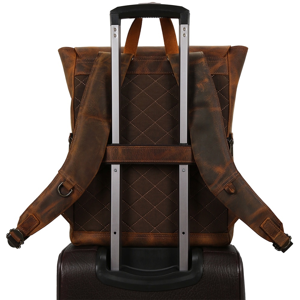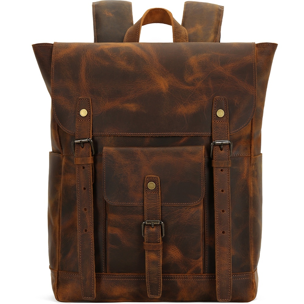 Rucsac din piele naturala, compartiment laptop 15.6 inch, potrivit pentru birou, calatorii, drumetii, activitati zi de zi, aspect vintage, stil retro, unisex, JOLAR., P-0120BN, Maro