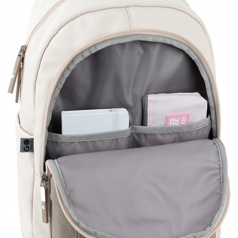 Rucsac pentru scoala si activitati zilnice, fete 9+ ani, cu buzunar ascuns si compartiment pentru laptop, bej GoPack