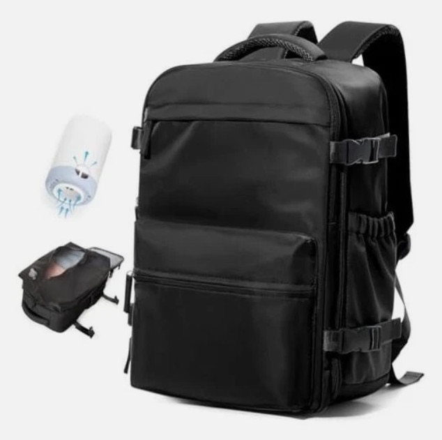 Rucsac Wizzair de calatorie cu Vacuum, pompa inculsa, Bagaj de mana, multifunctional, Impermeabil, Multiple Compartimente, 60 L, Spatiu Laptop, Respirabil si Spatios, 42*15*29 cm, negru