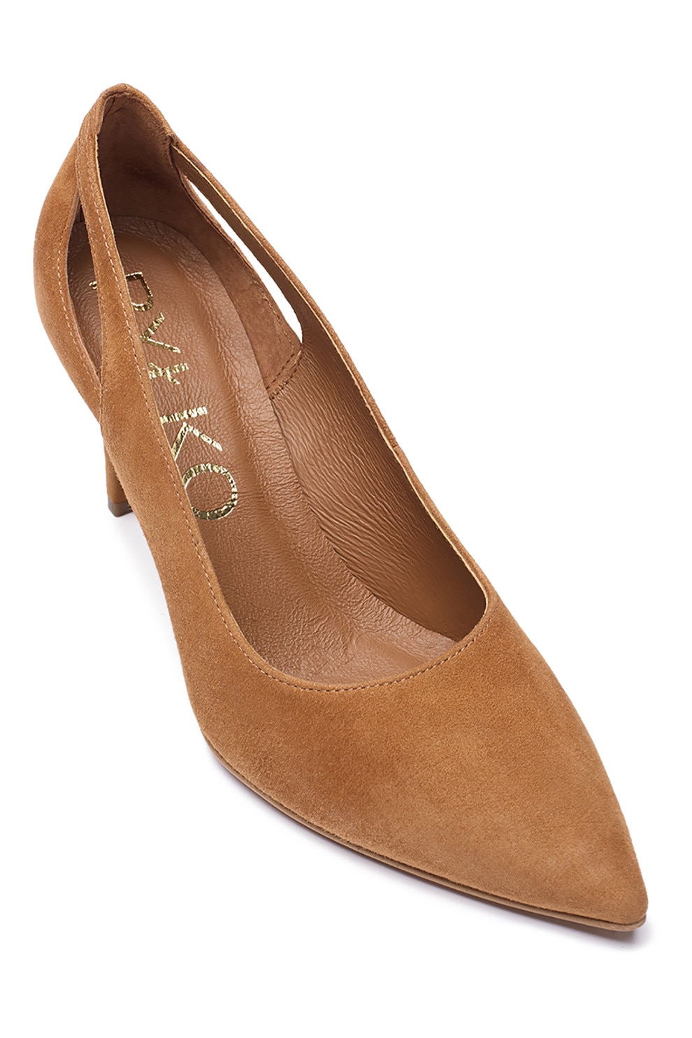 RYŁKO, Pantofi stiletto din piele intoarsa cu decupaje Phoebe, Caramel