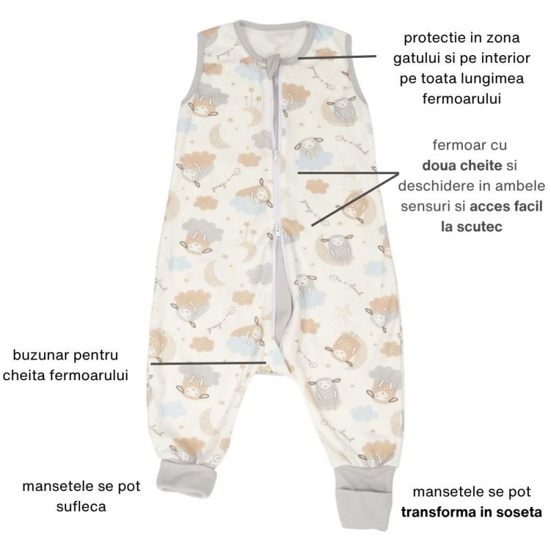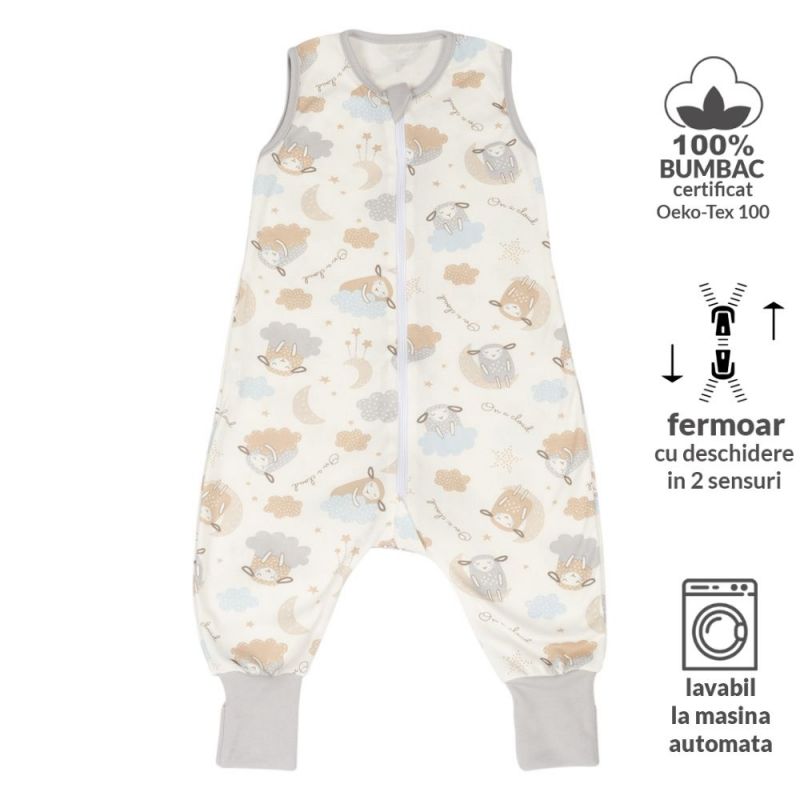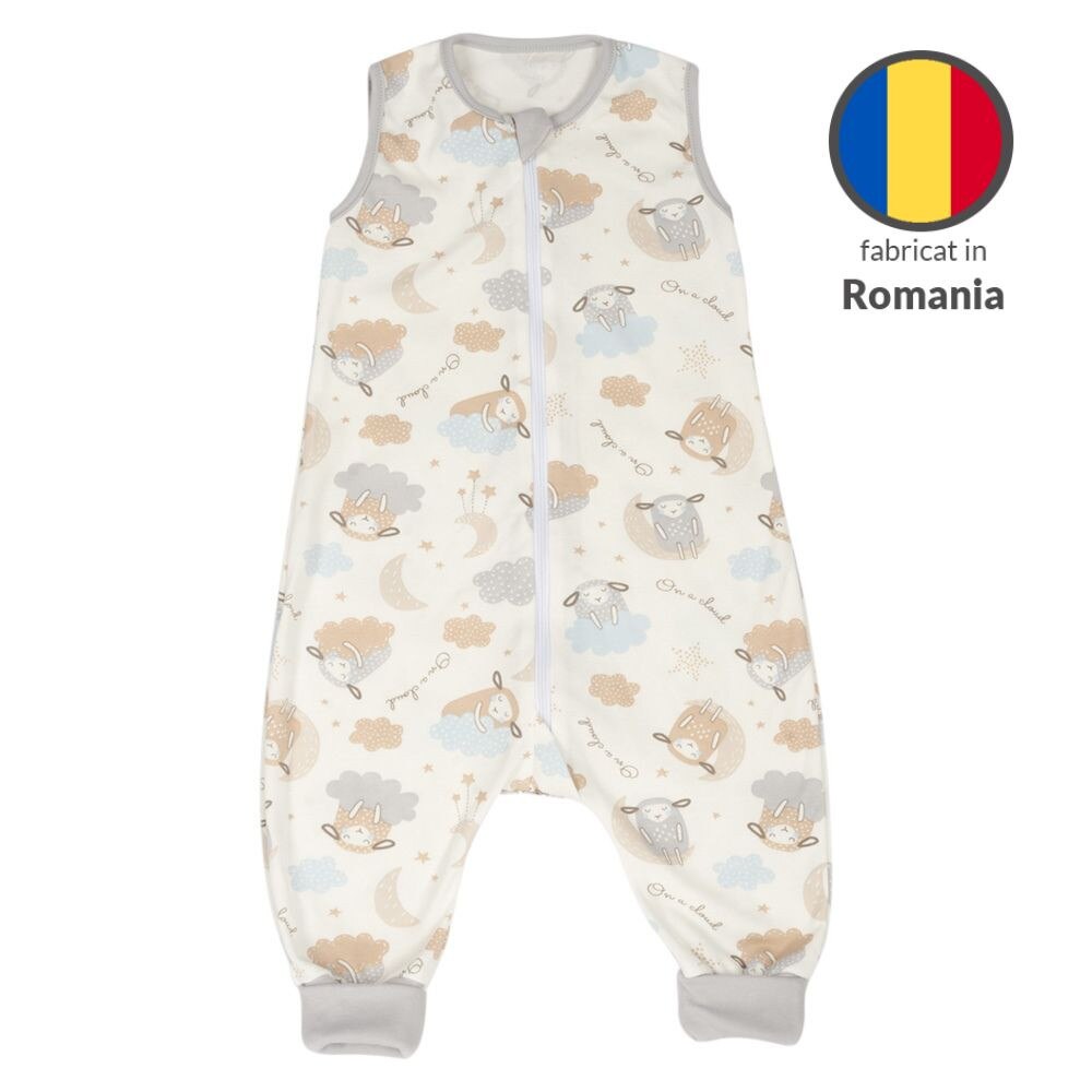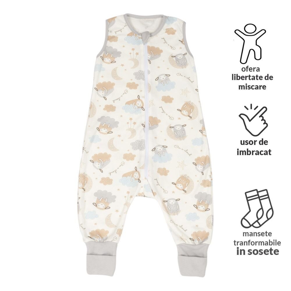 Sac dormit copii de vara din bumbac cu picioare 6-18 luni Kidizi On a Cloud Pastel, 0.5 tog, mansete transformabile in soseta