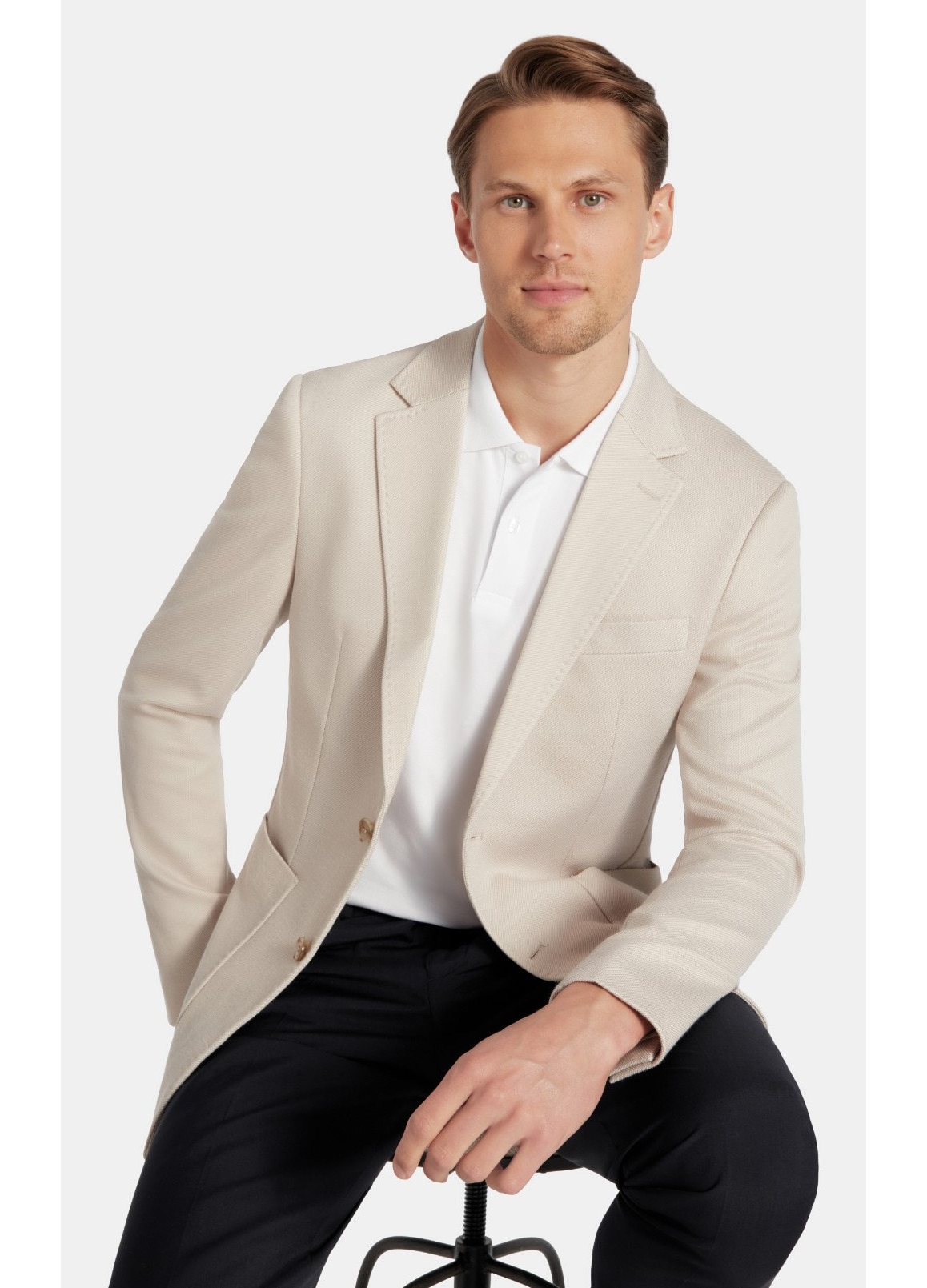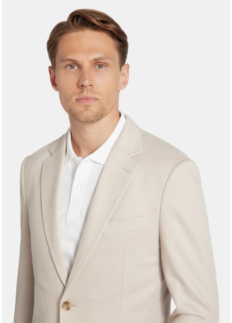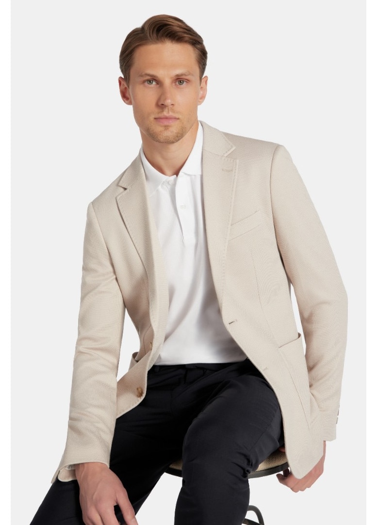 Sacou Barbatesc Pako Lorente, Model Texturat, Slim Fit, Buzunare Aplicate Anchiere cu Un Singur Rand de Nasturi, Bej, Bej