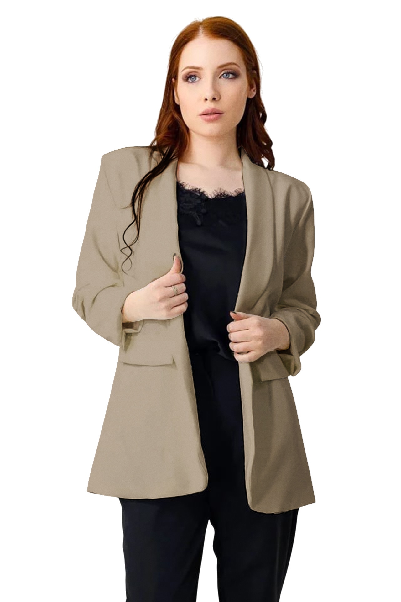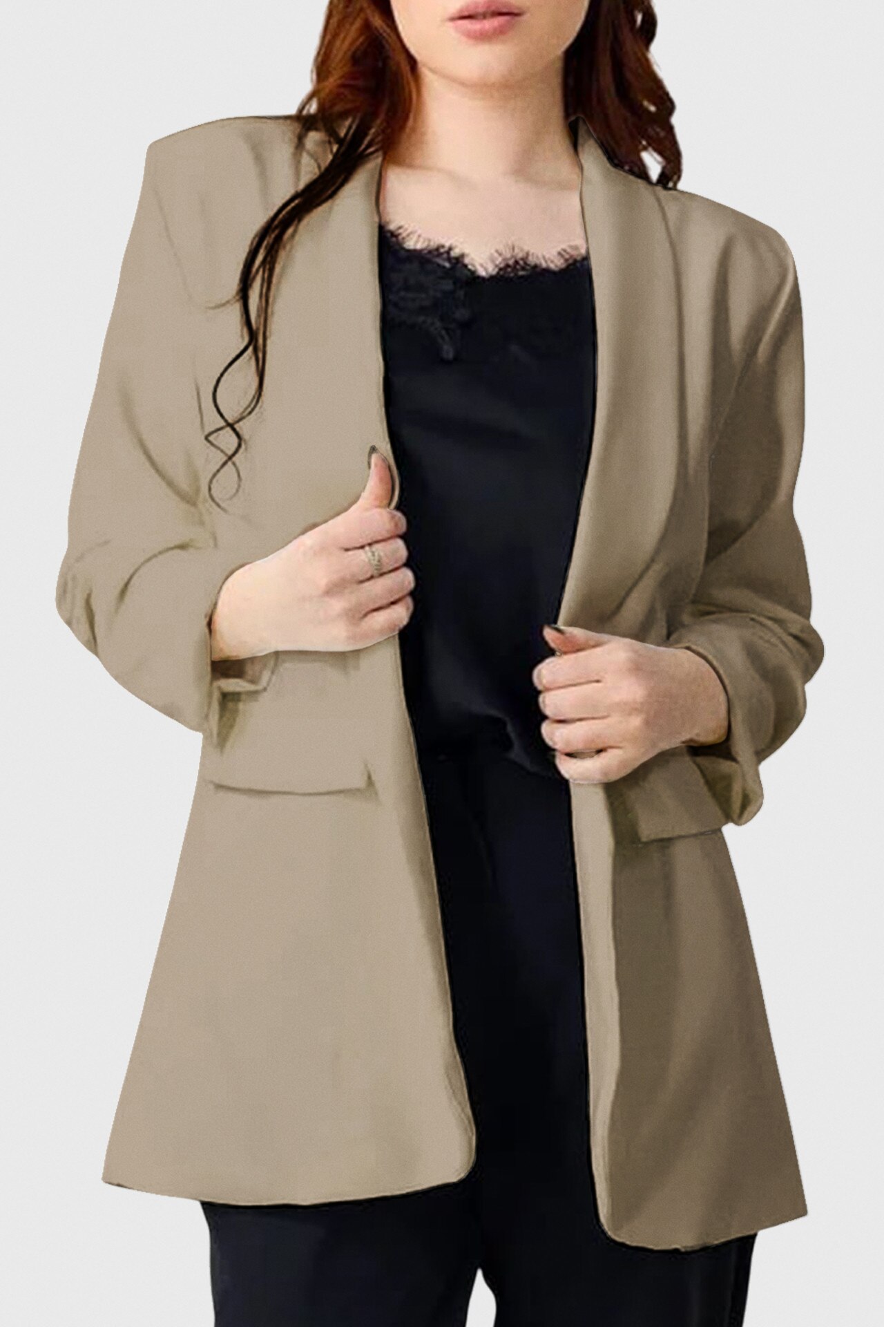 Sacou casual BLUMY, cu lungime medie si clapete, Bej