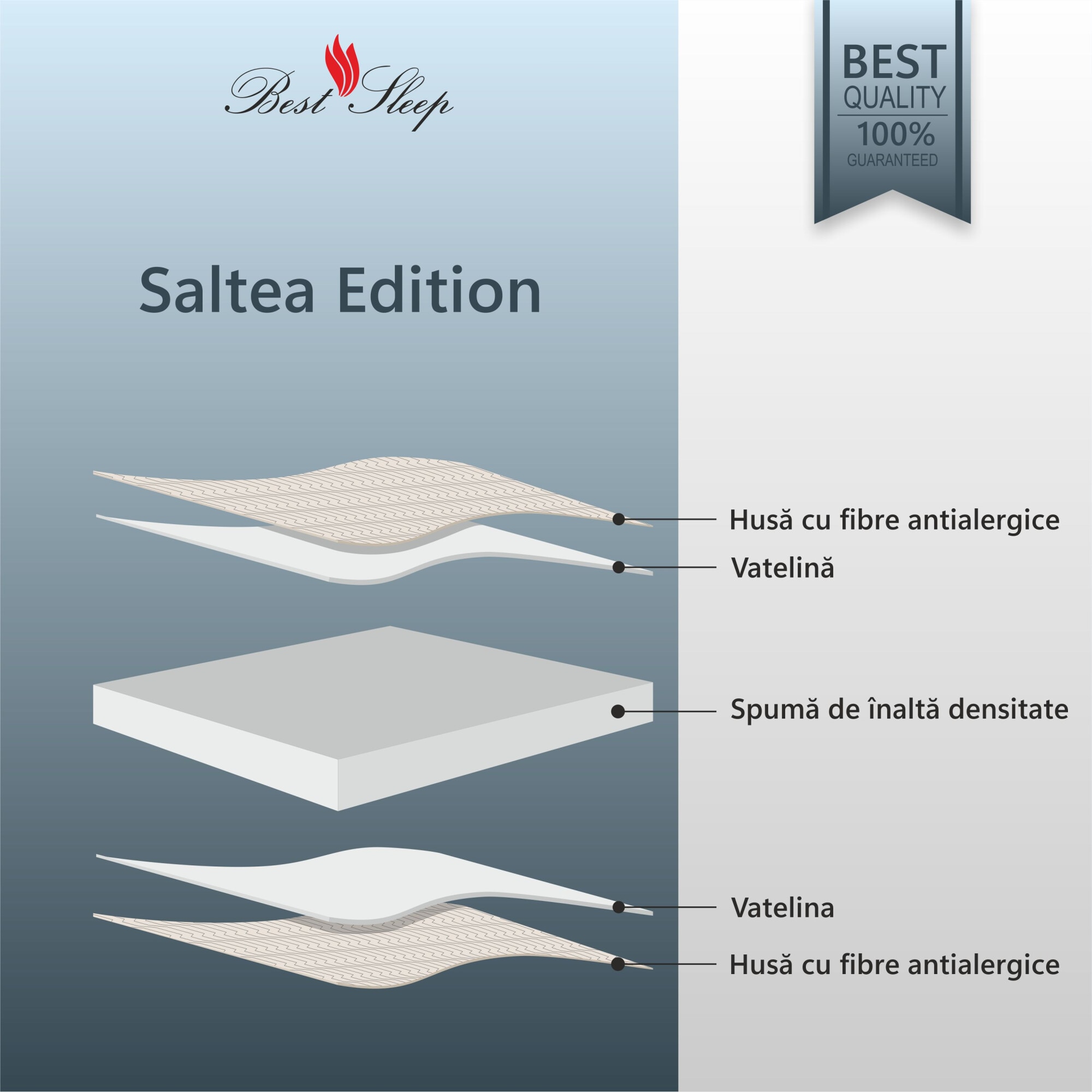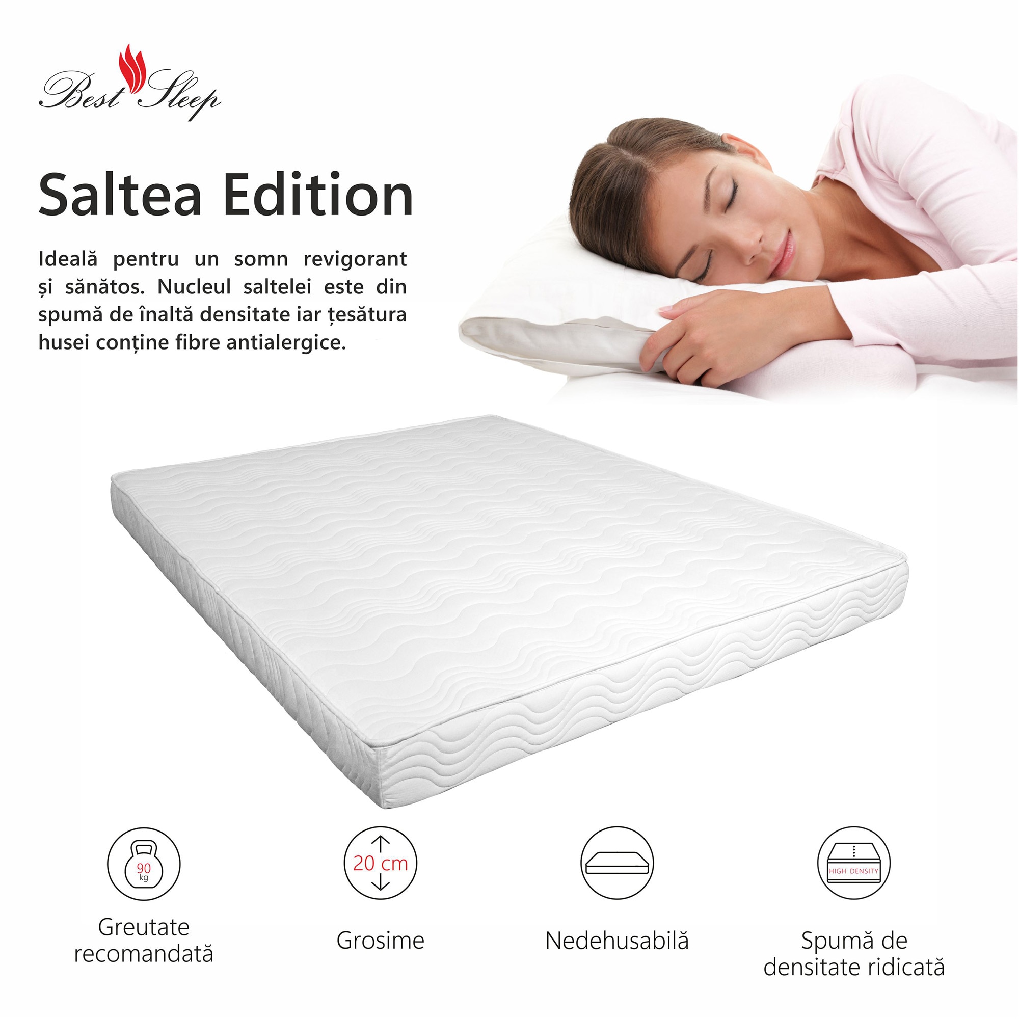 Saltea ortopedica Best Sleep Base DoubleSide, 140x200 cm, spuma poliuretanica, hipoalergenica, revesibila, ferma