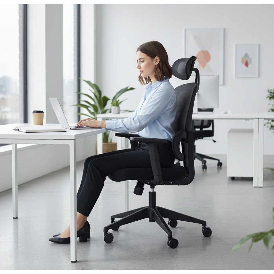 Tetiera ergonomica 3D— reglaj vertical 8 cm + unghi reglabil pana la 90°, pentru sustinere optima a gatului