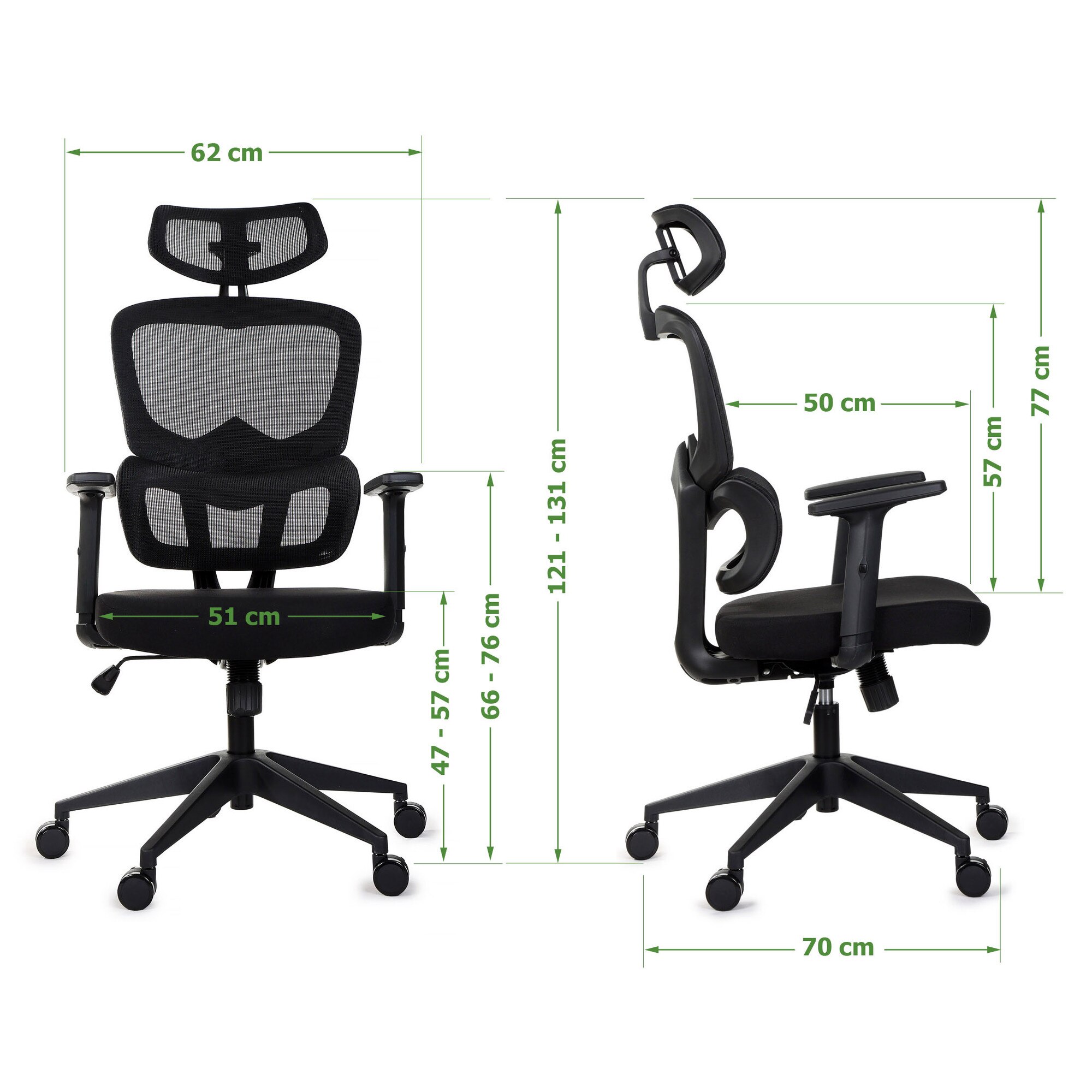 Reglaj inaltime sezut — interval 47–57 cm, cu ajutorul unui cilindru pneumatic rezistent
