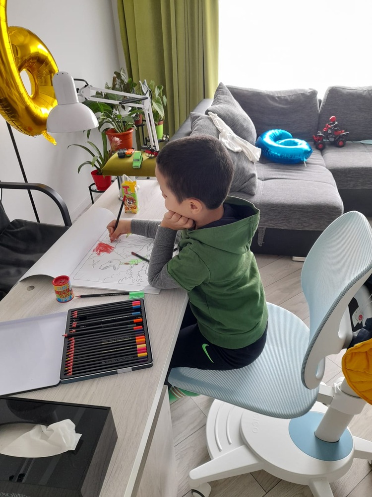 LE: am inteles ca asa e cel mai bine pentru copil fiindca nu "pleaca" scaunul in spate cand scrie. Este destul de incomod pana se aseaza copilul la birou, fiindca nu se poate trage mai aproape stand pe scaun, insa odata asezata postura este foarte buna.