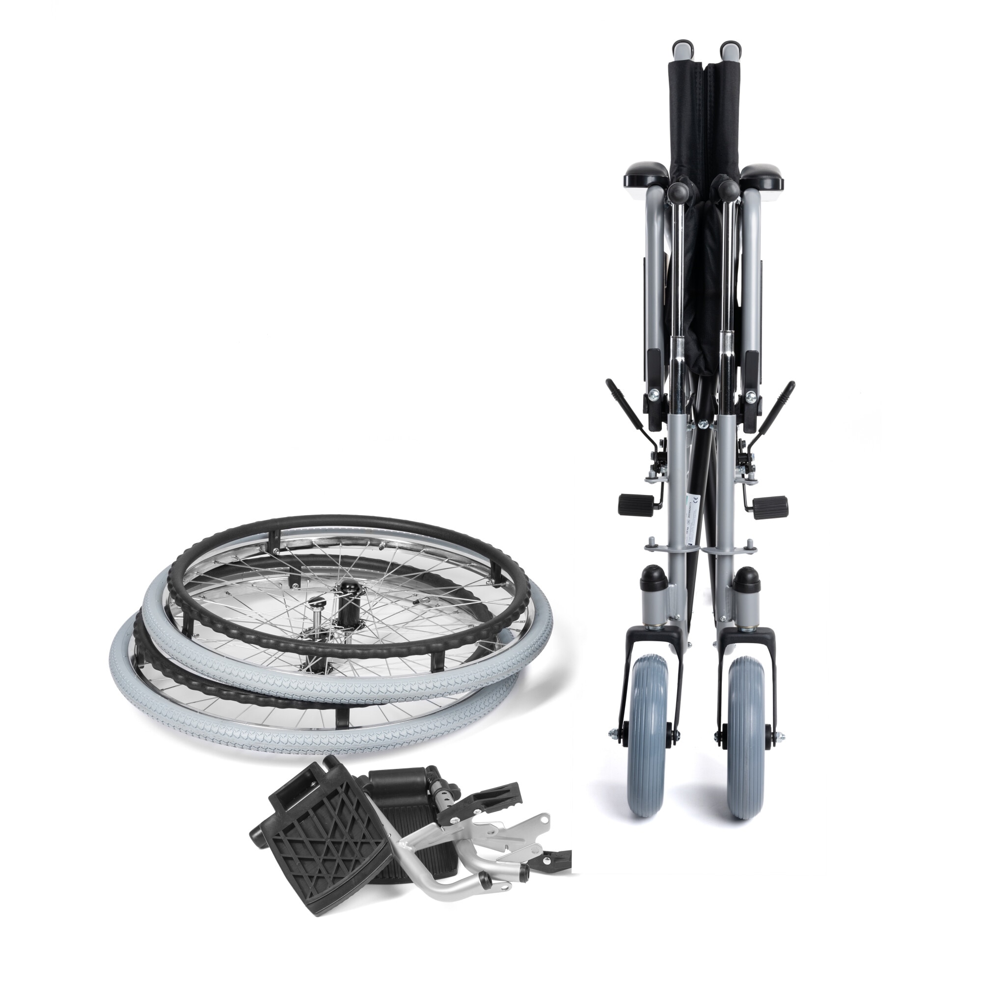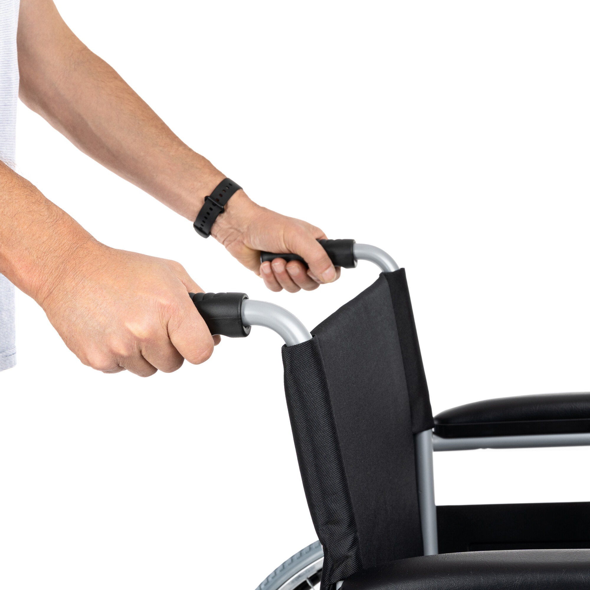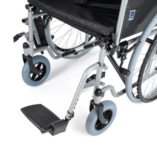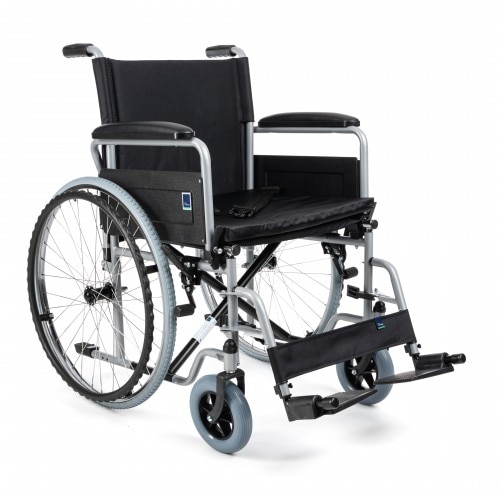 Scaun cu rotile din otel, pliabil, material textil, antrenare manuala, manere rabatabile, sezut 51 cm, negru, Timago