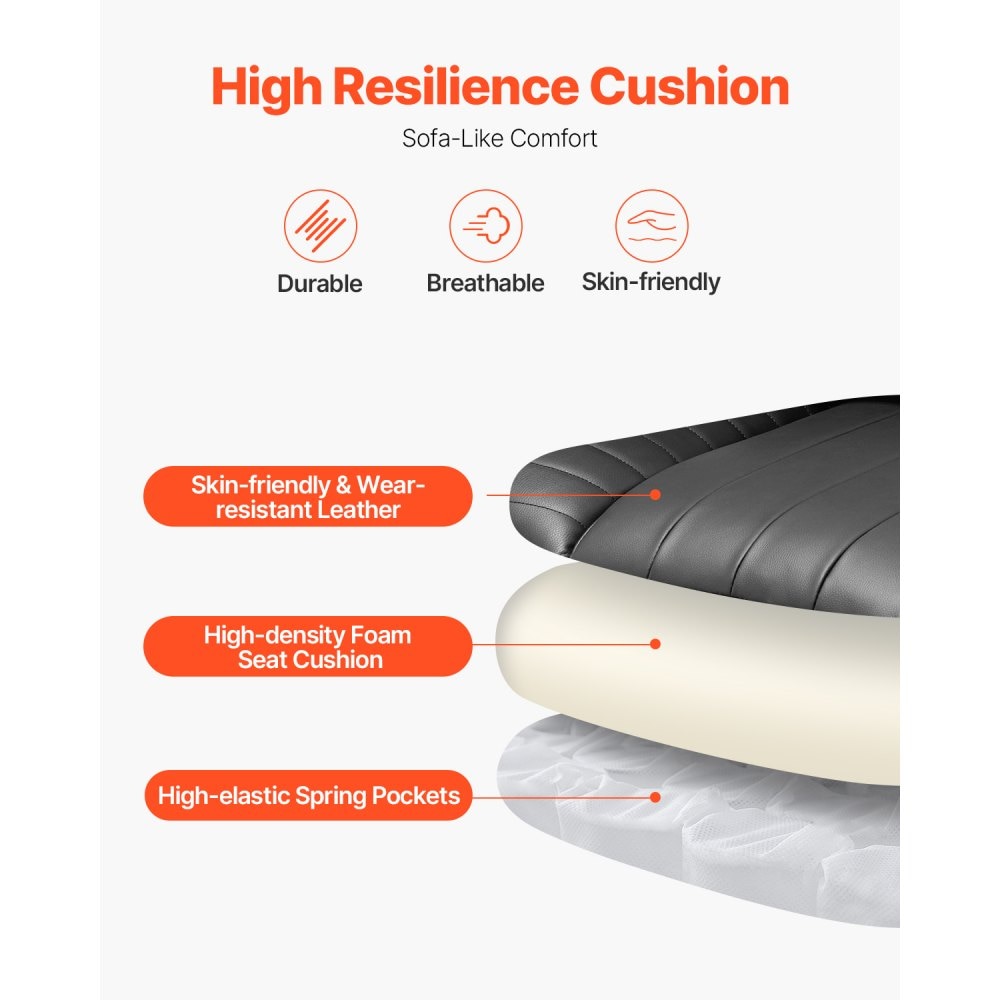 Spatarul inalt si forma ergonomica a acestui scaun ofera un suport esential pentru spate, permitandu-va sa va relaxati pe tot parcursul zilei. Perna de spuma de inalta densitate si pielea premium asigura o senzatie de confort asemanatoare cu o canapea, fie ca munciti sau va relaxati.