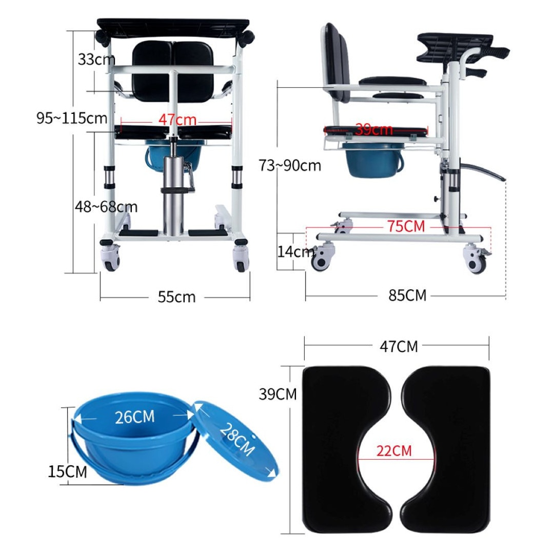 Scaun hidraulic pentru transfer pacienti 3 in 1 ( scaun toaleta, scaun pentru dus si scaun pentru transfer) - sarcina maxima 150 kg, Timago
