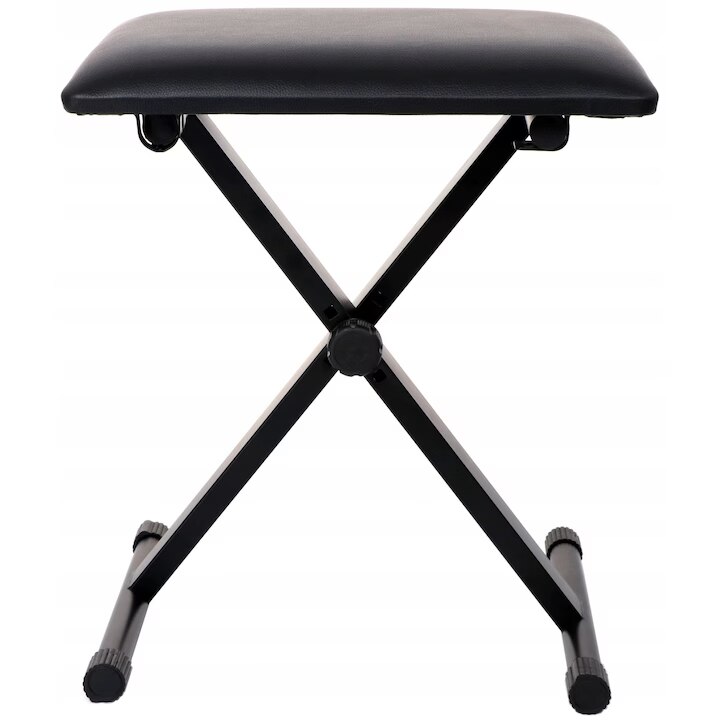 Scaun pentru pian, din metal si plastic, pliabil, inaltime reglabila, sezut din imitatie piele, negru