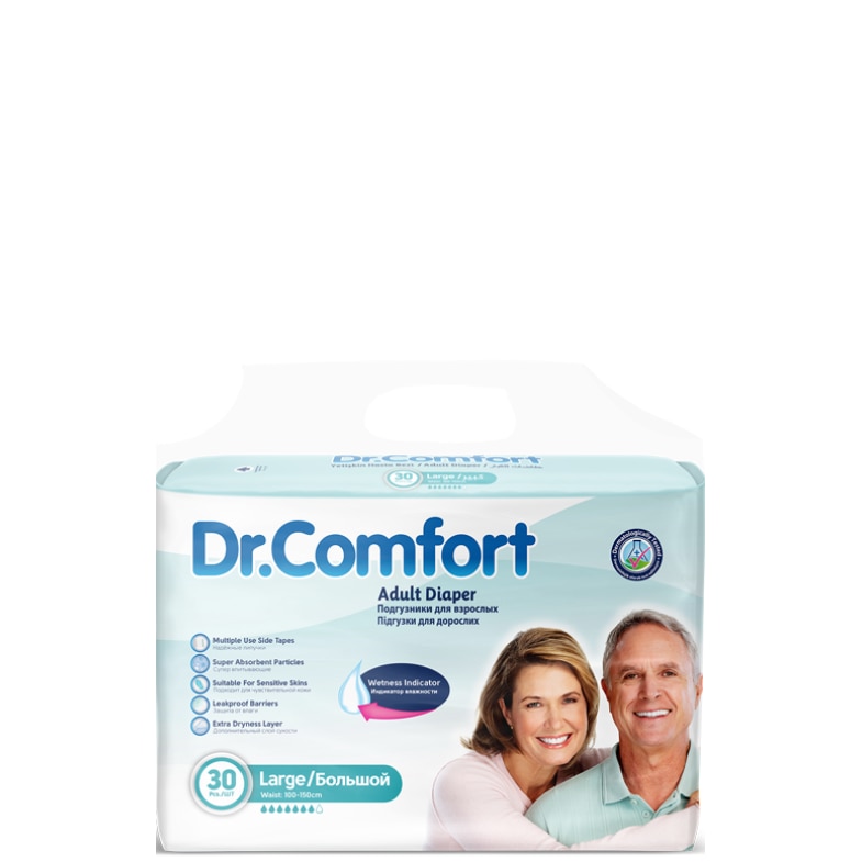 Scutece adulti, Dr.Comfort, 100-150 cm, Marime L, absortie rapida, 30 buc
