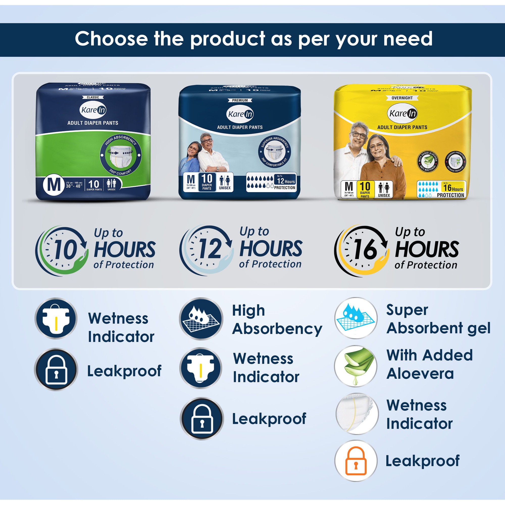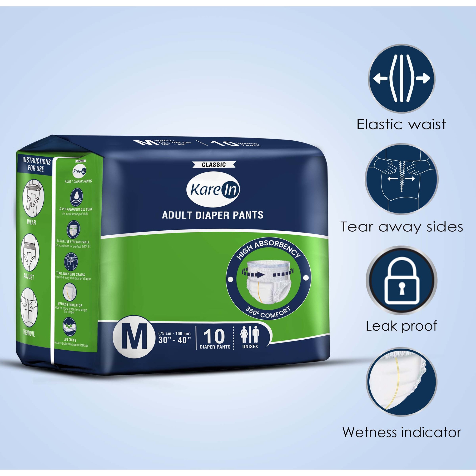 Scutece-chiloti pentru adulti, KAREIN Classic, 10 ore protectie, unisex, M