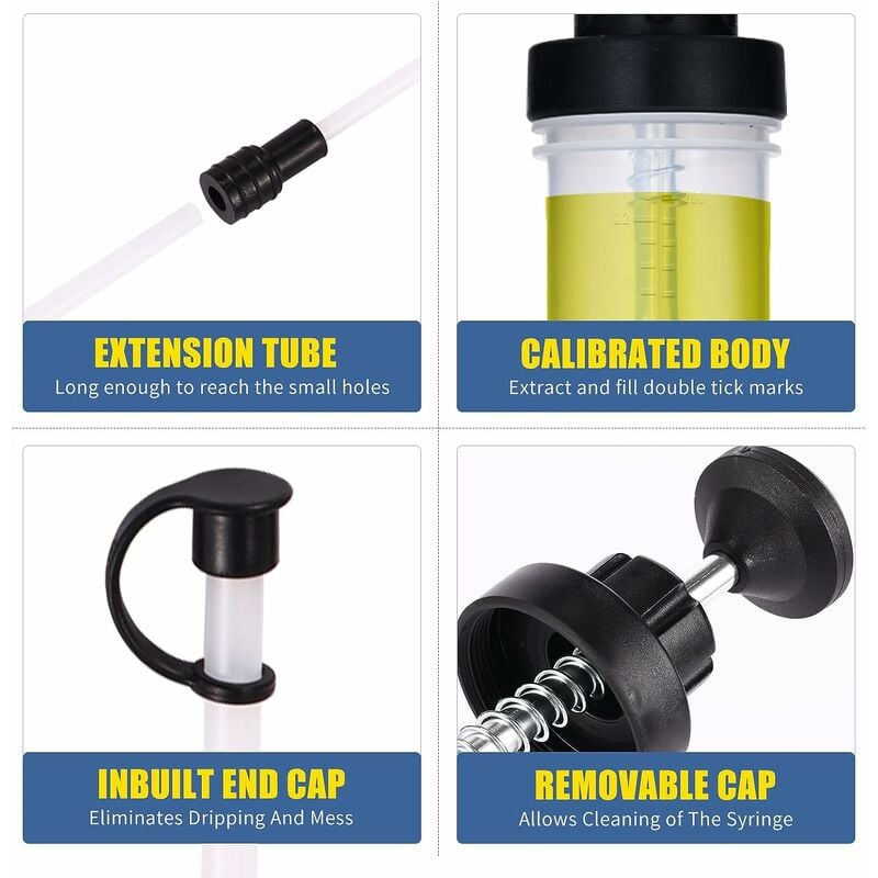 Seringa pentru transfer ulei 500 ml, tub flexibil transparent 20 cm + 22 cm, rezistent la substante chimice, pentru ulei de motor si lichide de frana