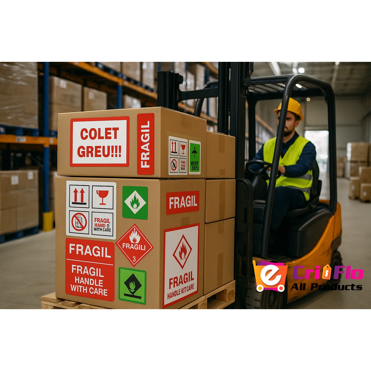 Set 10 Etichete Logistice Fragil, autoadeziv usor de aplicat, Cri-Flo, Culoare Rosu, Dimensiune 30x60 mm
