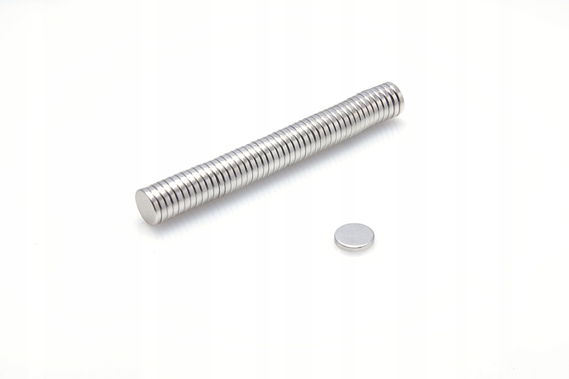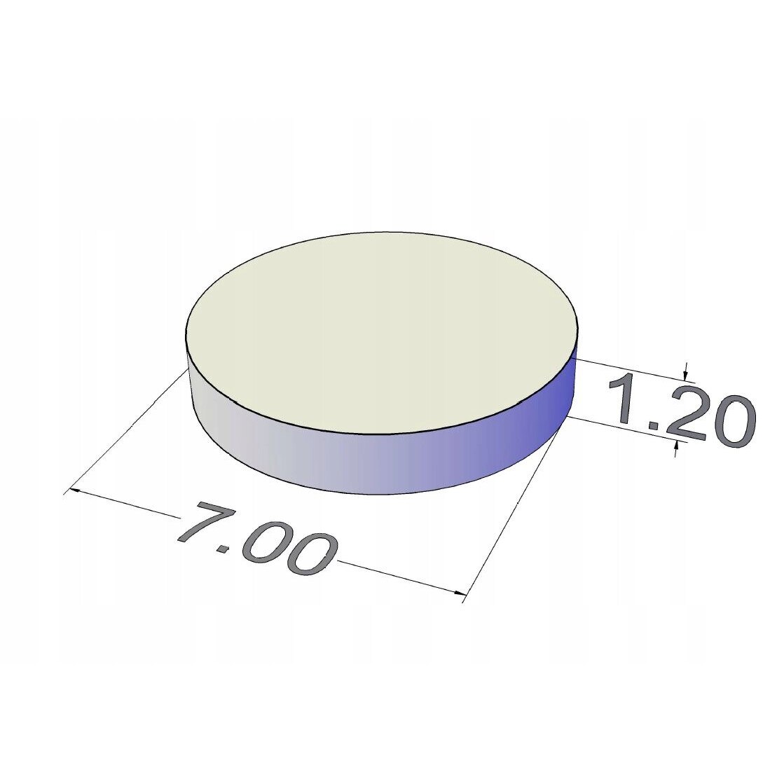 Set 10 magneti neodymici cilindrici 7x1,2mm, Top Magnesy, Ni+Cu+Ni, 0,35g