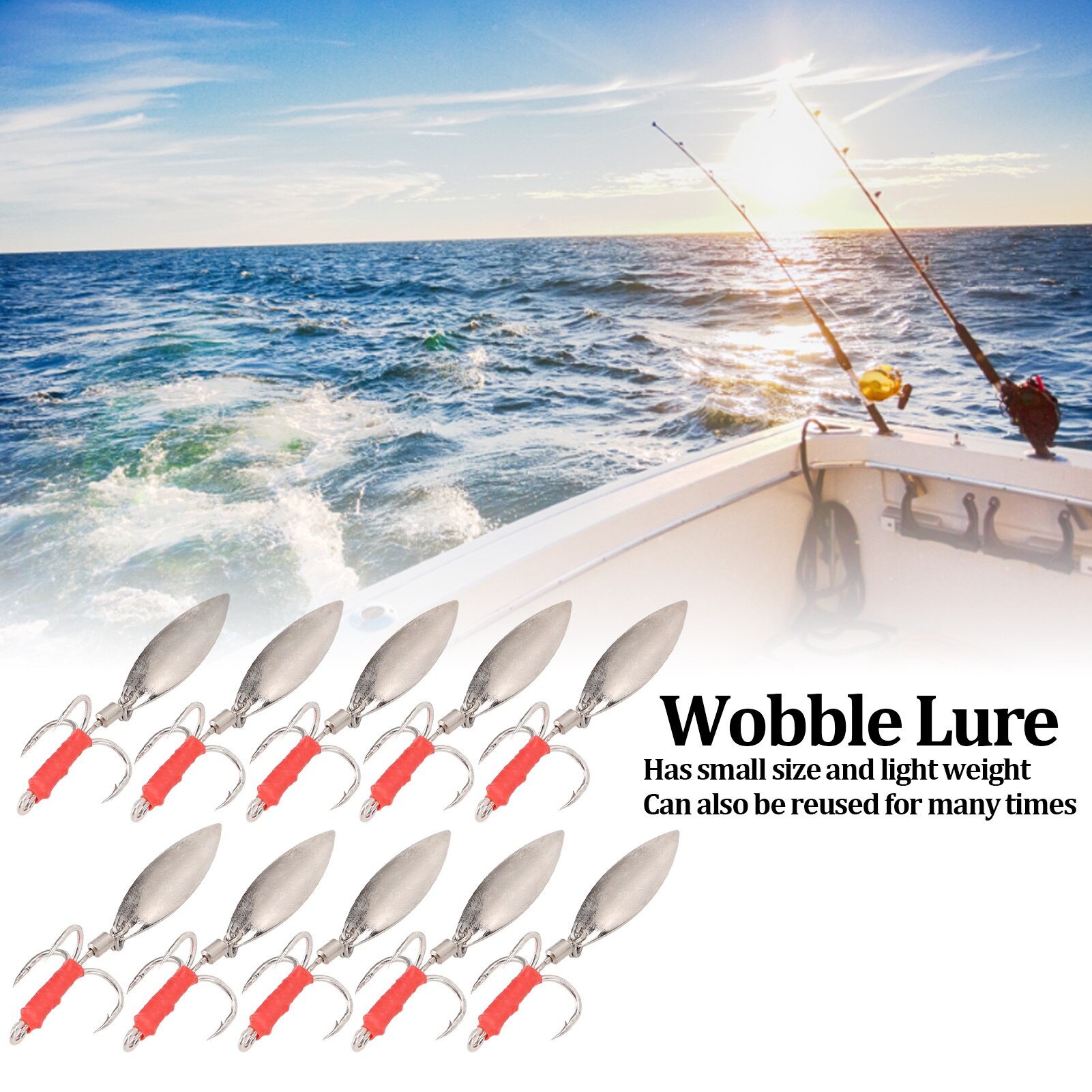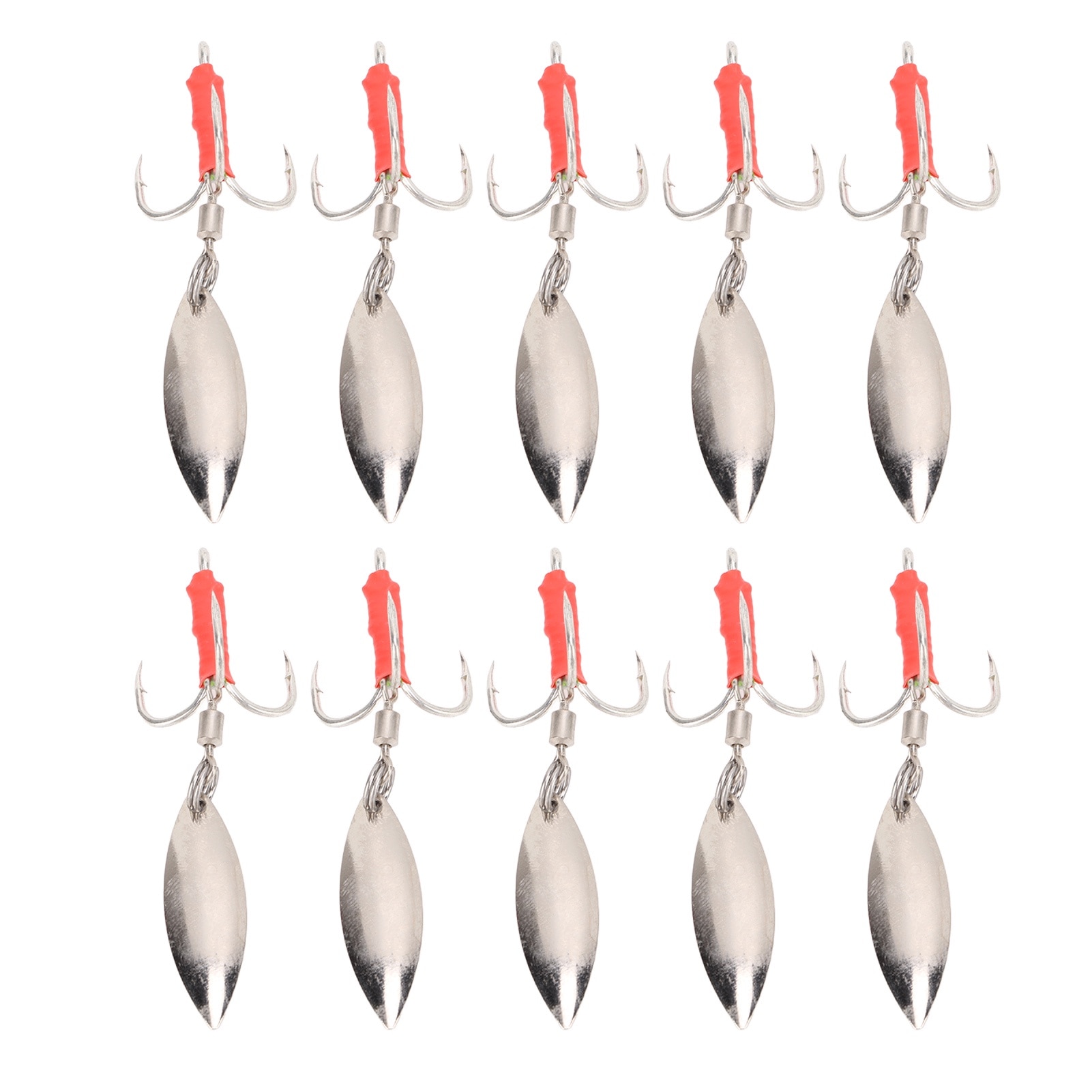 Set 10 naluci pentru apa dulce si sarata, Mmgoqqt, Inox, 0.47", Argintiu / Rosu