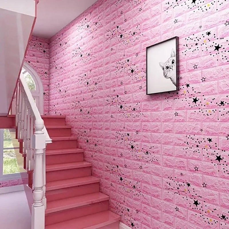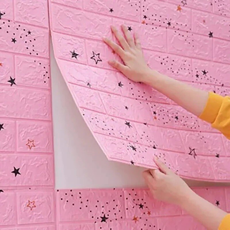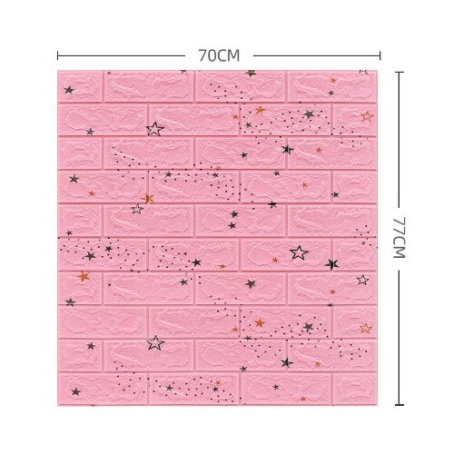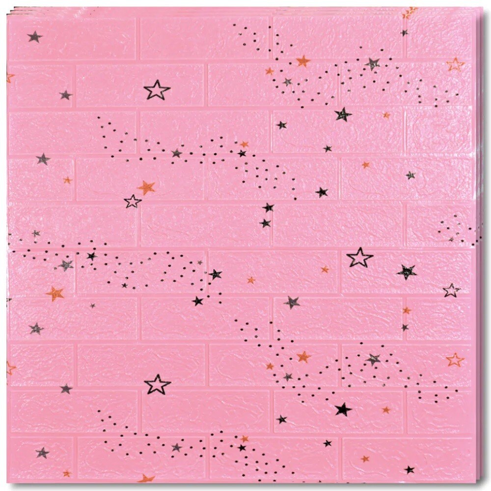 Set 10 Placi Tapet 3D, Autoadezive, 70 x 77 cm, Grosime 3 mm, din Polietilena, Tip Caramida, Model Stele, Suprafata Totala Acoperita 5.3 mp, Roz