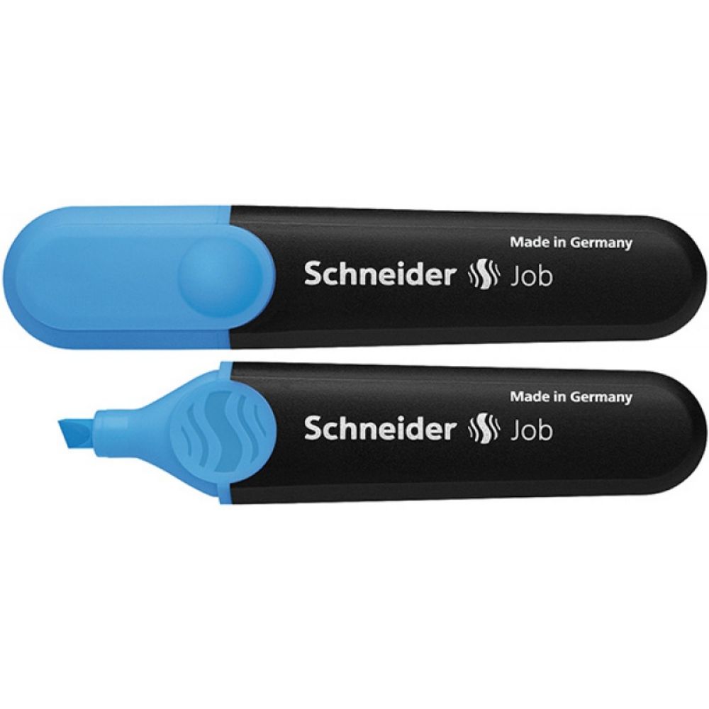 Set 10 Textmarkere Schneider Job, Varf Tesit si Scriere de 1-5 mm, Cerneala pe Baza de Apa, Culoare Albastru Fluorescent, Evidentiatoare