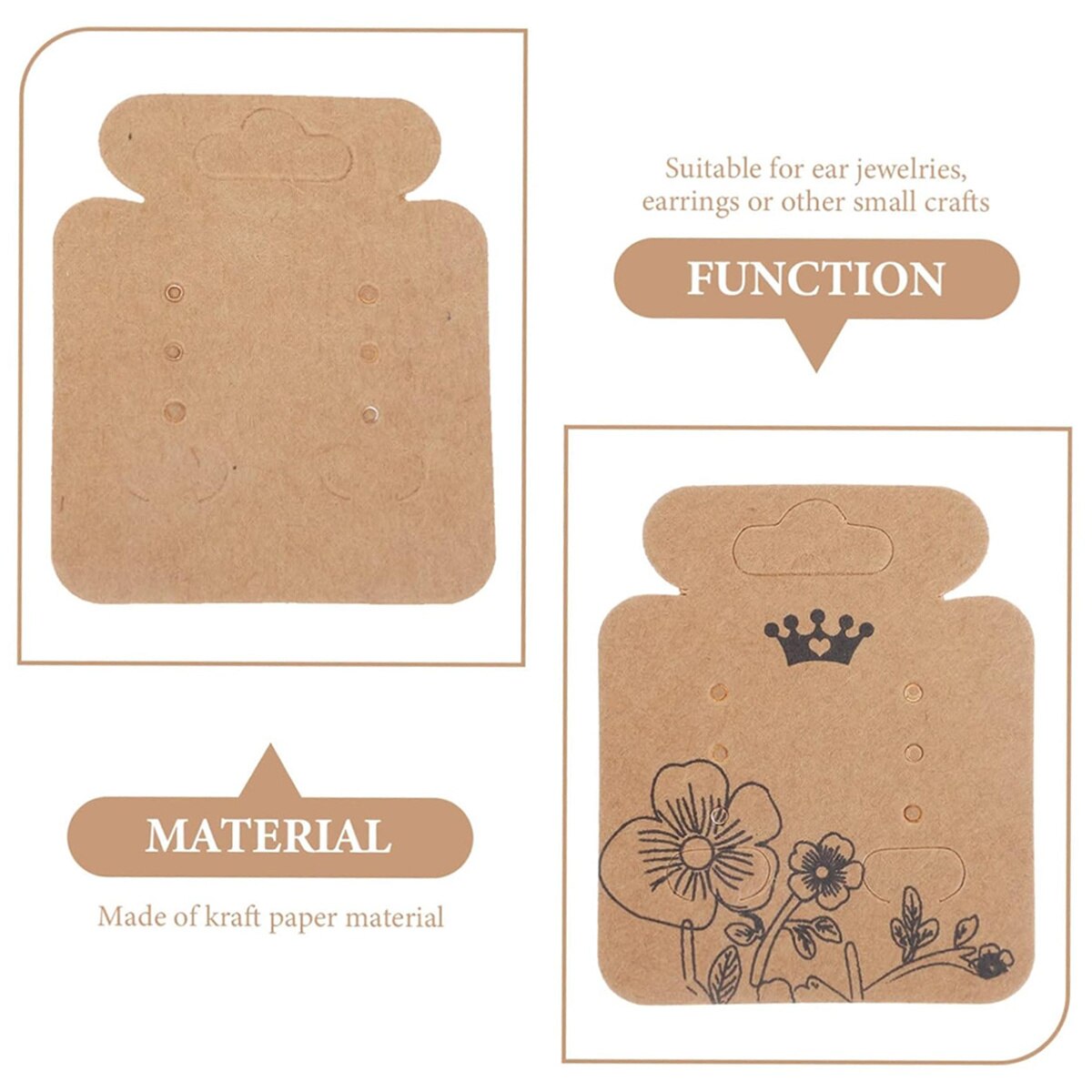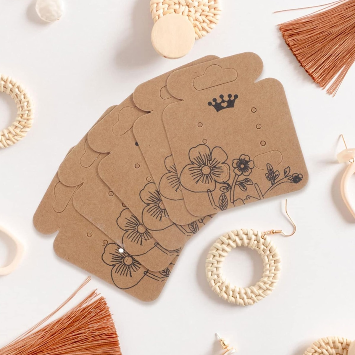 Set 100pcs Carton pentru Cercei, 5.2x4.5cm, Maro