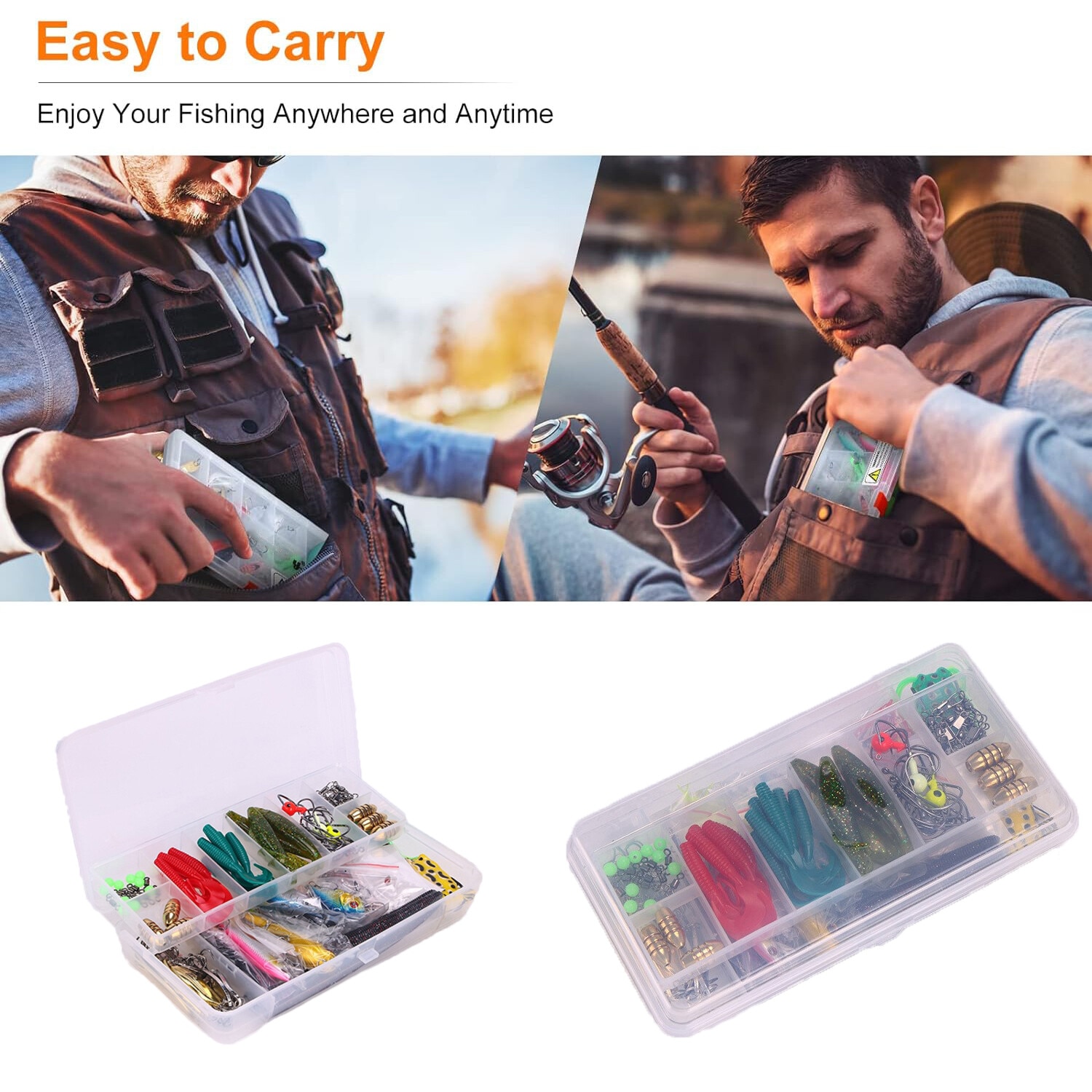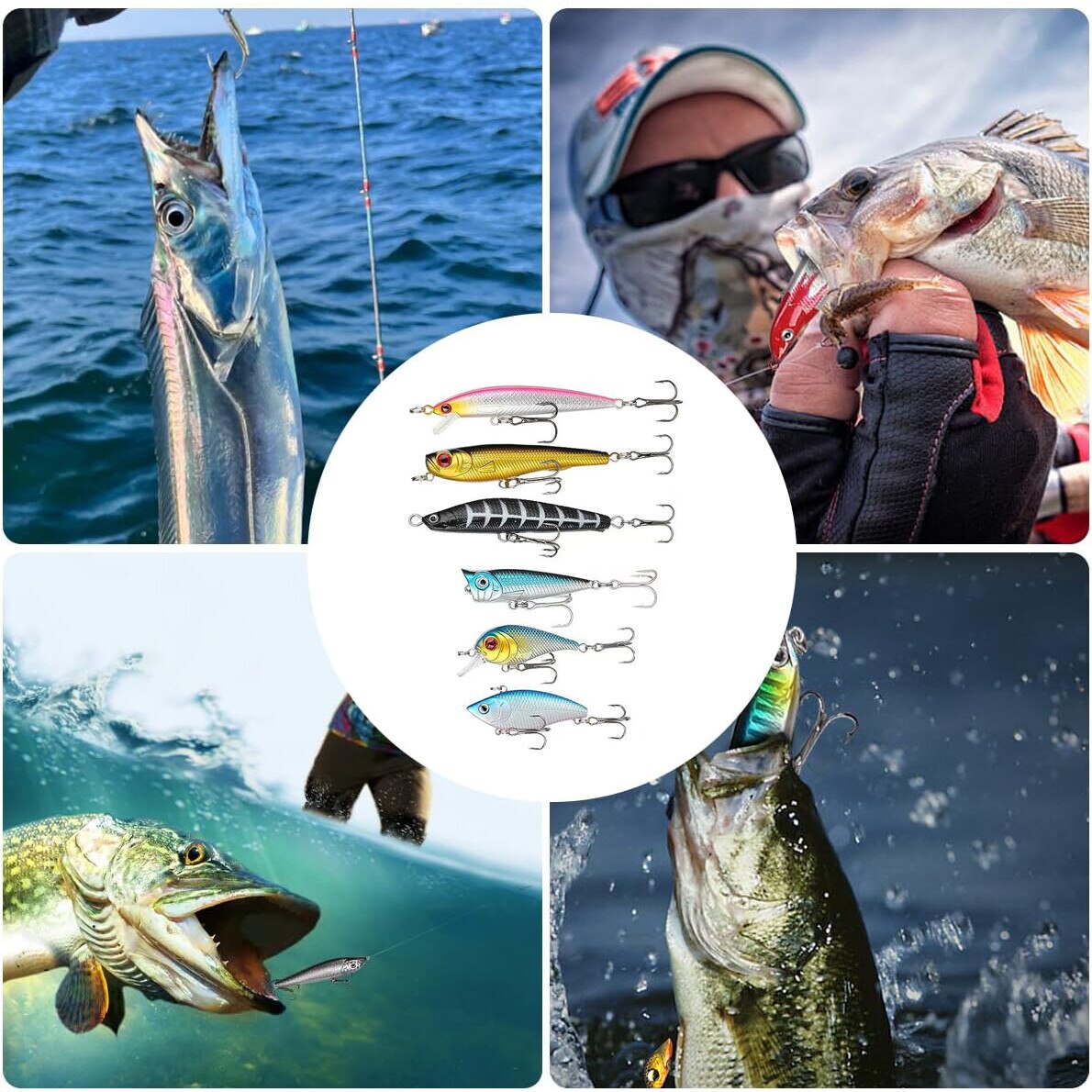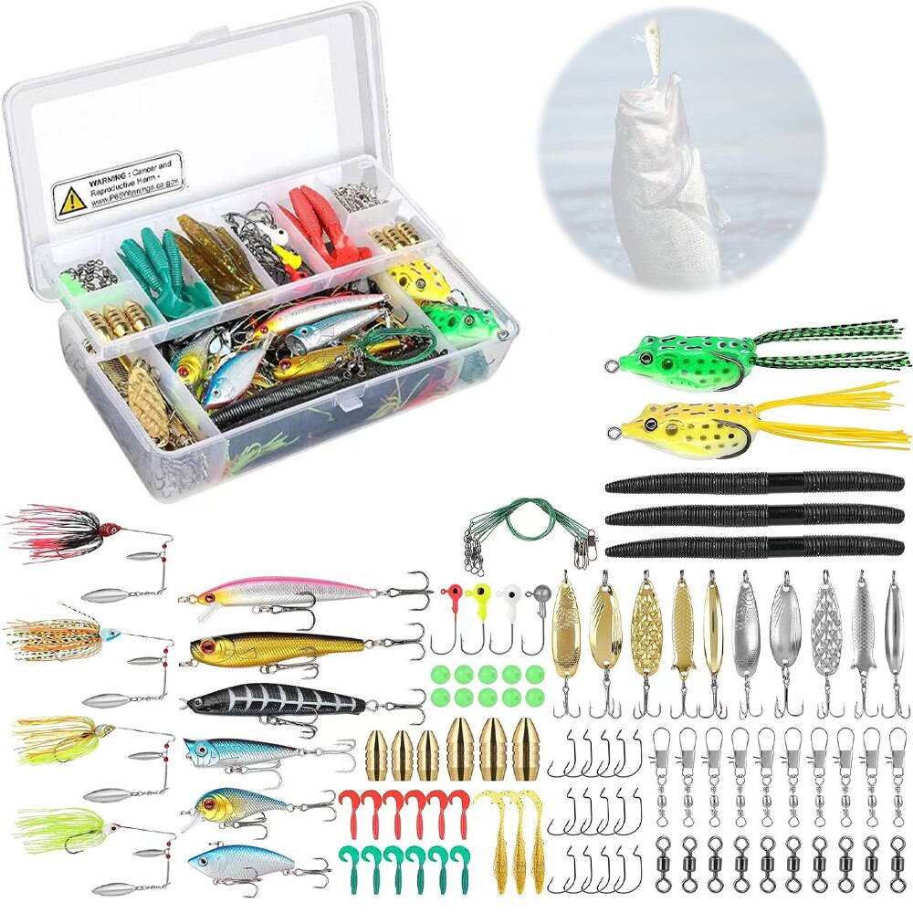 Set 102 momeli artificiale, Inclusiv accesorii de pescuit, momeala, dispozitive de fixare, carlige, unelte de pescuit si rame din plastic, Potrivit pentru diferite corpuri de apa
