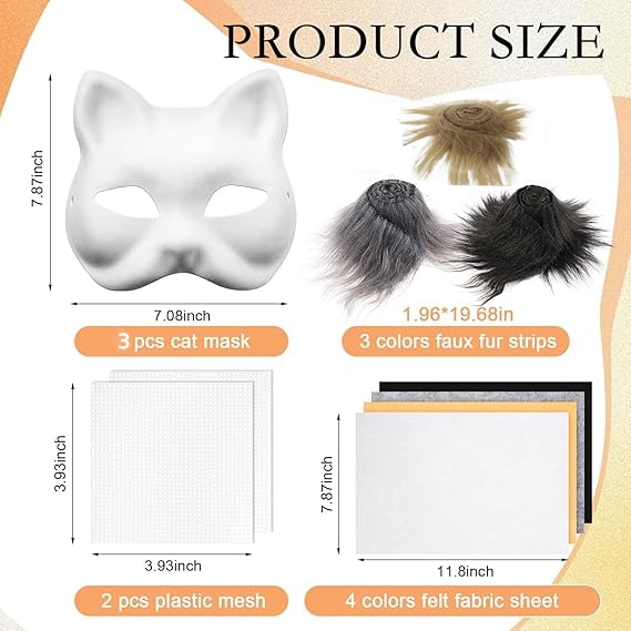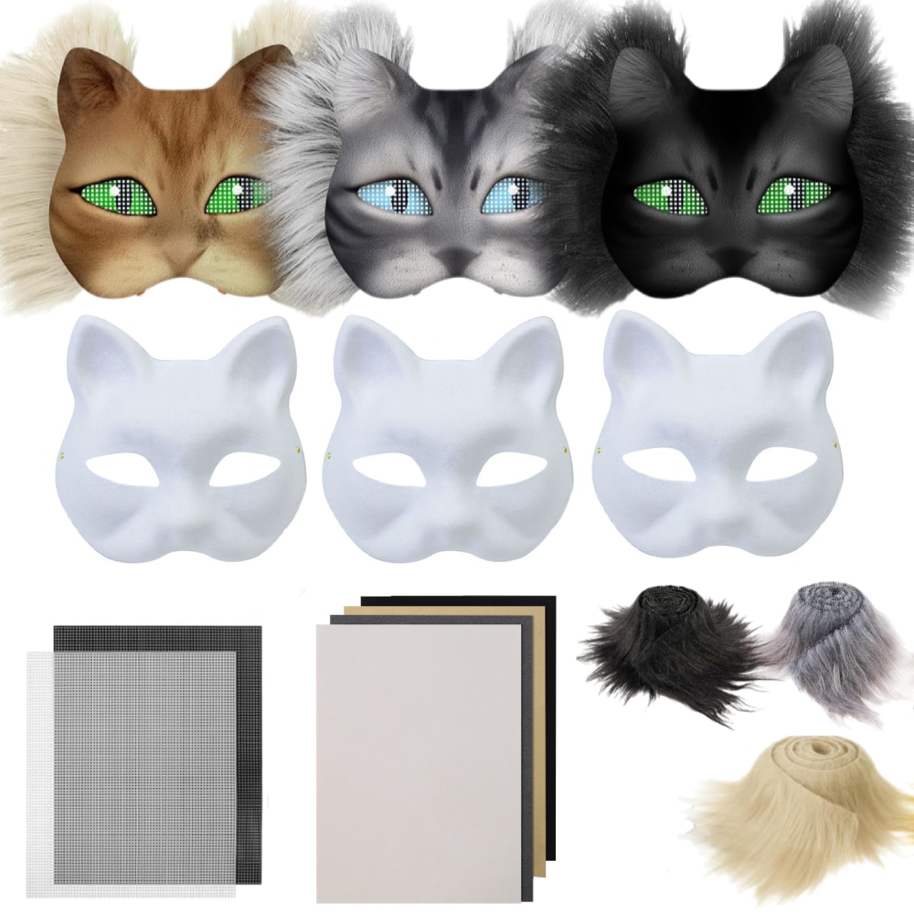 Set 12 Masca Therian Pisica, TopGearWorld®, cu ochiuri din blana de fetru si stele, DIY, Hartie, Halloween