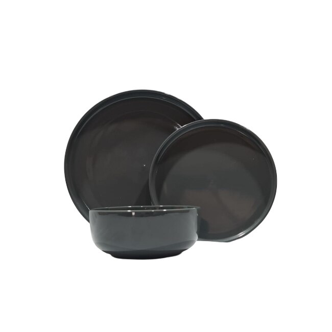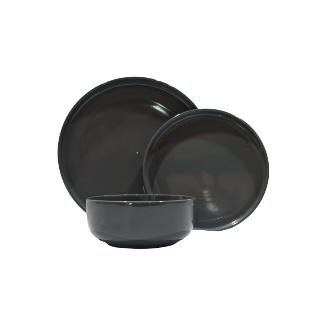 Set 12 piese serviciu de masa 2farfurii +1 bol gri mat