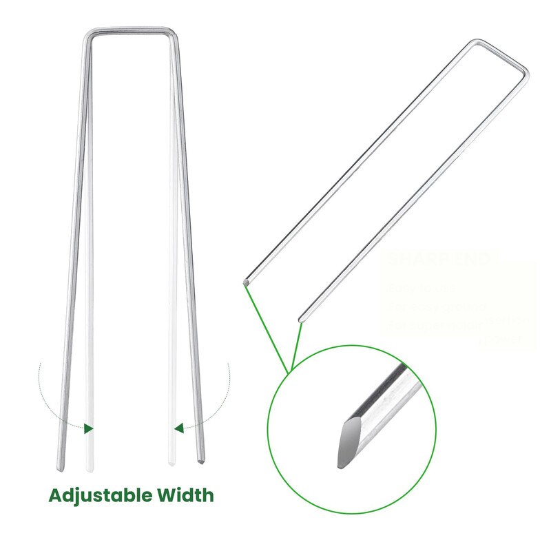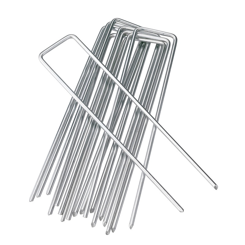 Set 15 cuie de gradina din otel galvanizat, kashemano, durabile, pentru fixarea tesaturilor de peisaj, argintii