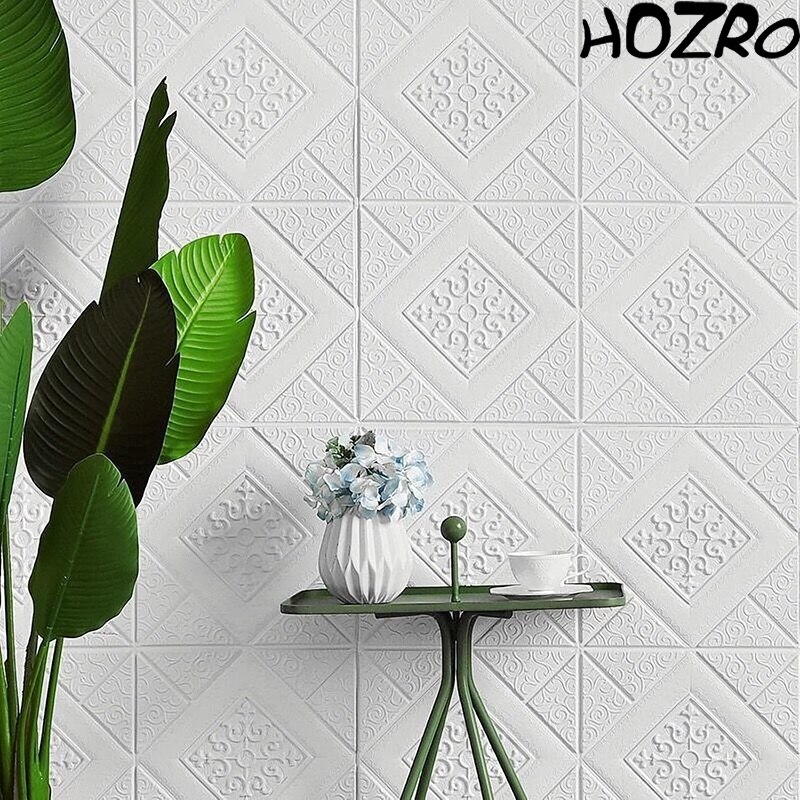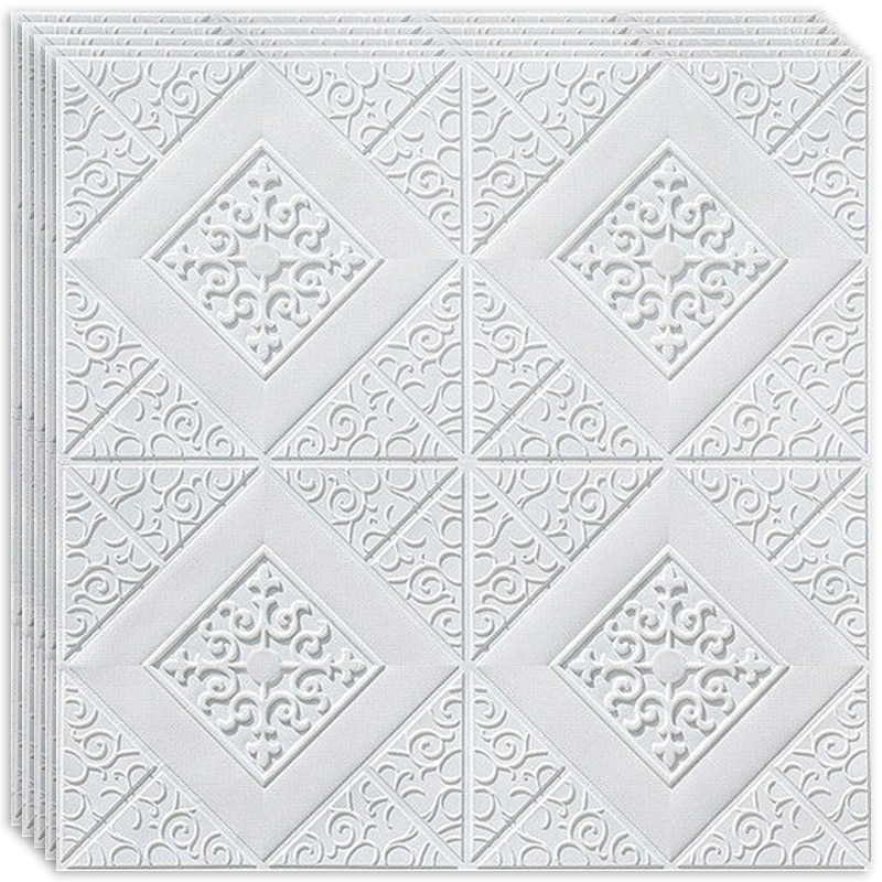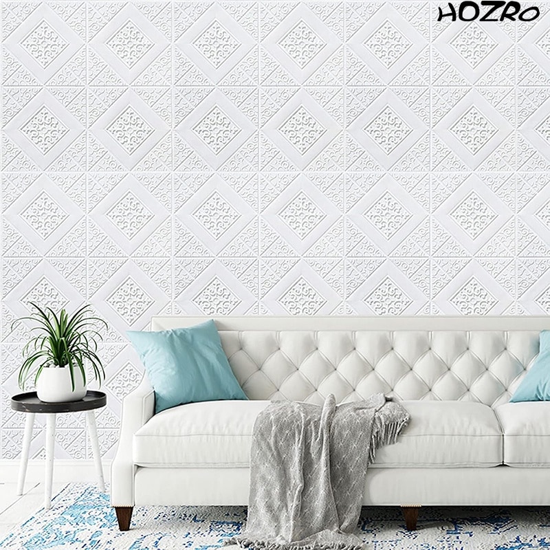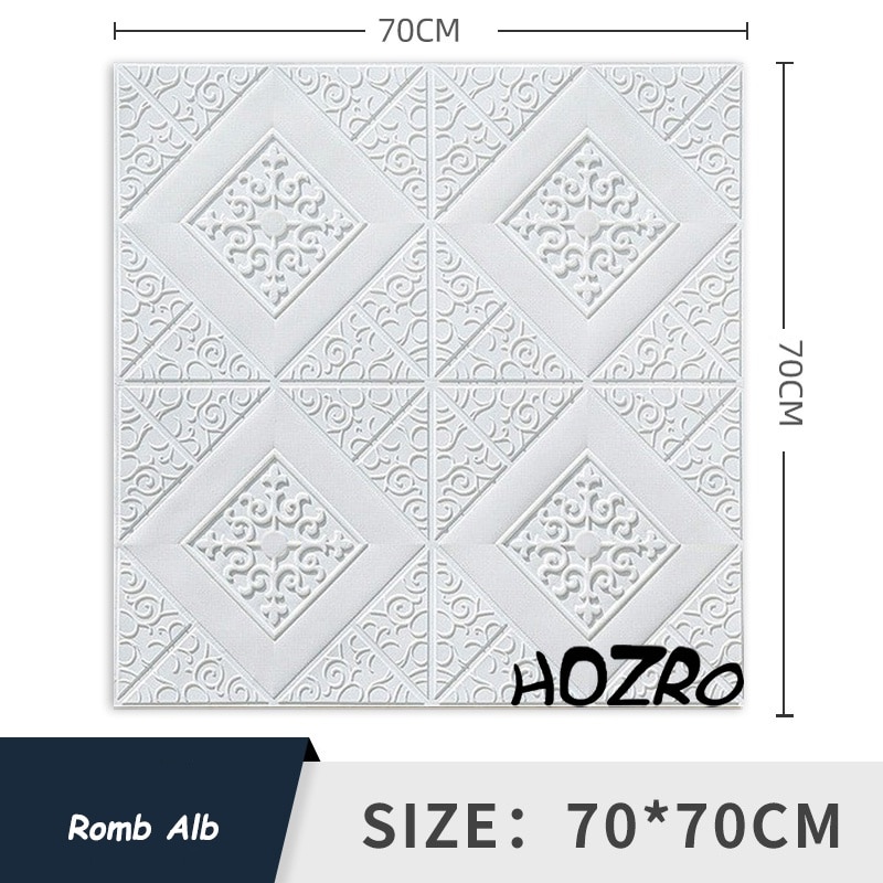 Set 160 x Tapet 3D autoadeziv HOZRO, Model abstract, pentru pereti si tavan, acopera o suprafata de 78.4 mp, design modern, foarte usor de montat, Alb Romb