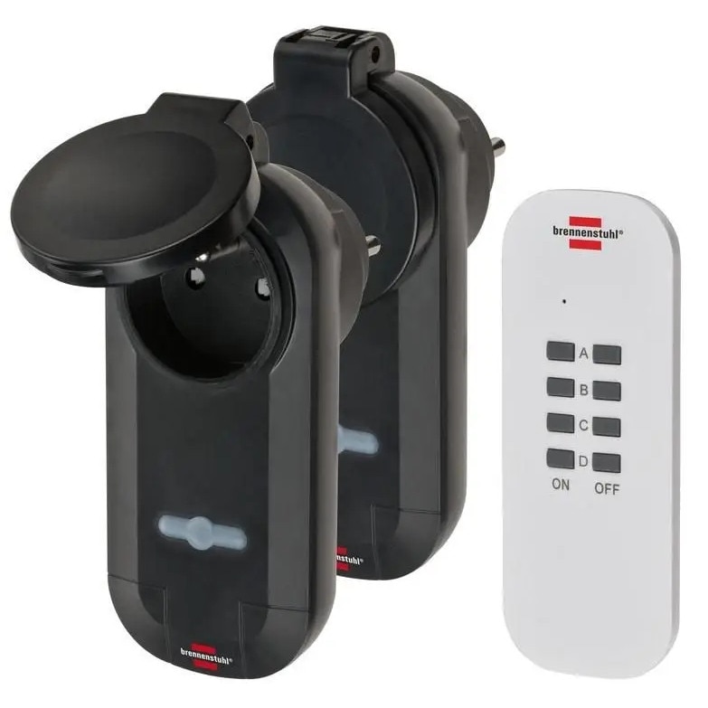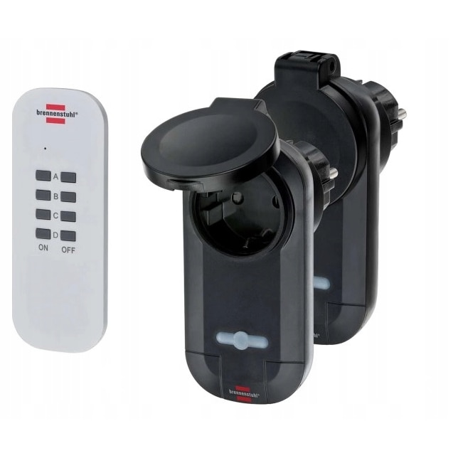 Set 2 adaptoare cu telecomanda Brennenstuhl Comfort Line, IP44, 16A, 1000W, 25m, negru, 13,5x7x5,7cm