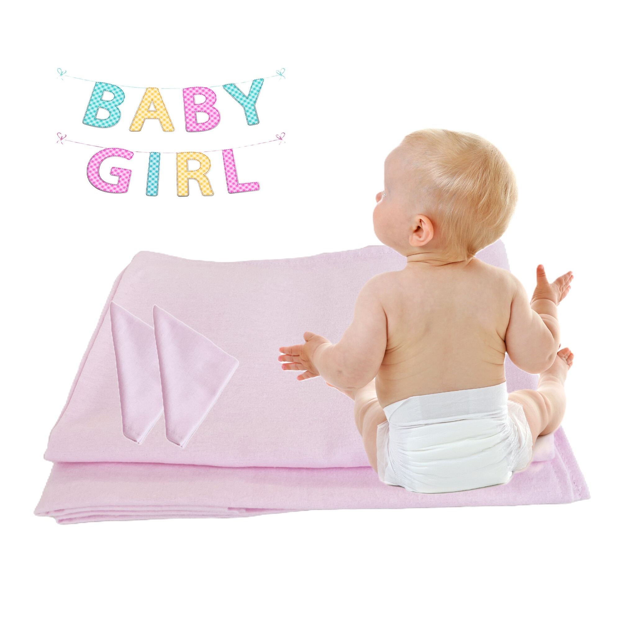 Set 2 bucati scutec de infasat bebe, 100x100cm, finet, cu 2 lavete, model uni, roz