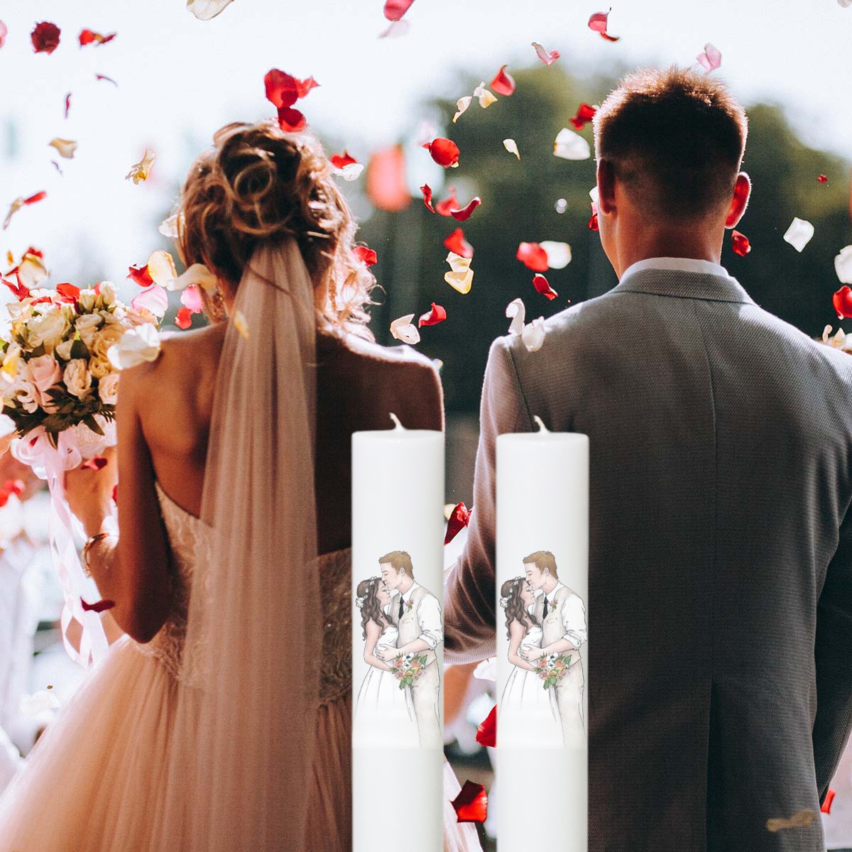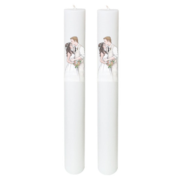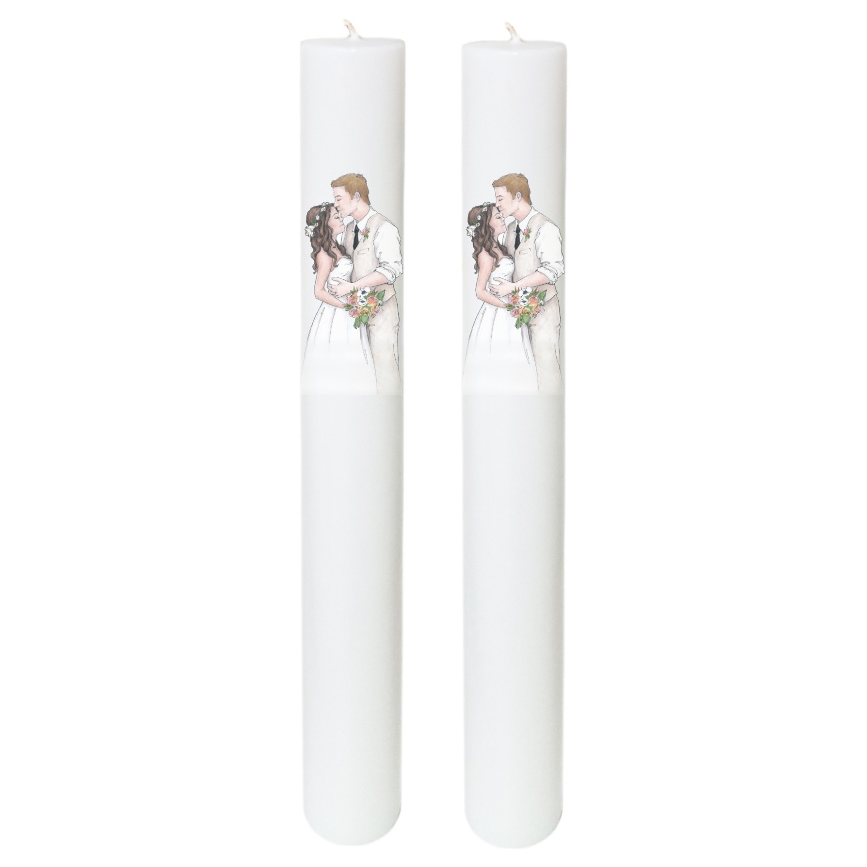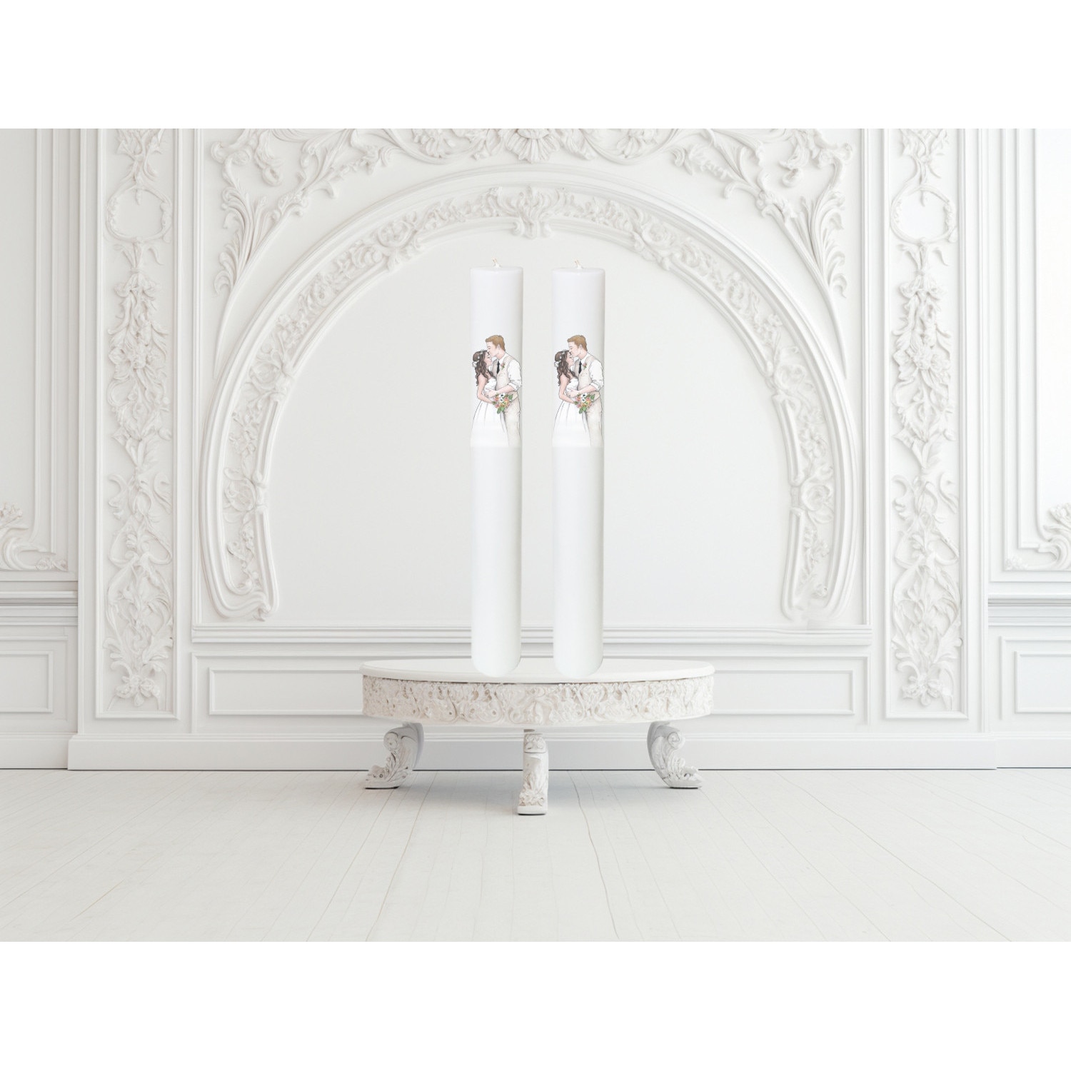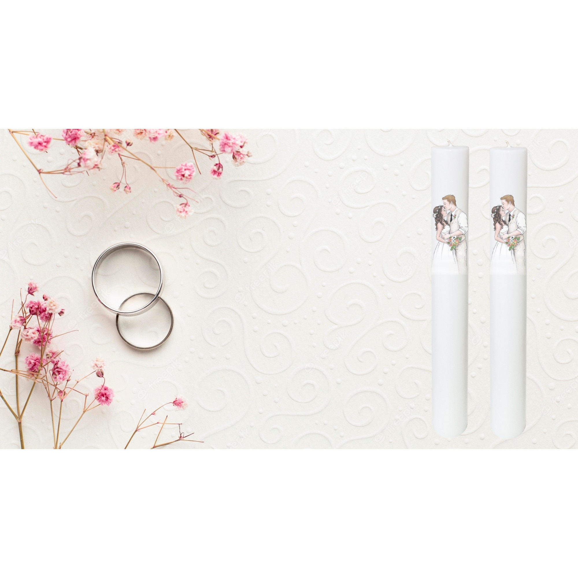 Set 2 lumanari nunta, aromata, miri tineri cu flori, FABRICA DE LUMANARI GHIOROC, H40cm - D4.5cm, alb